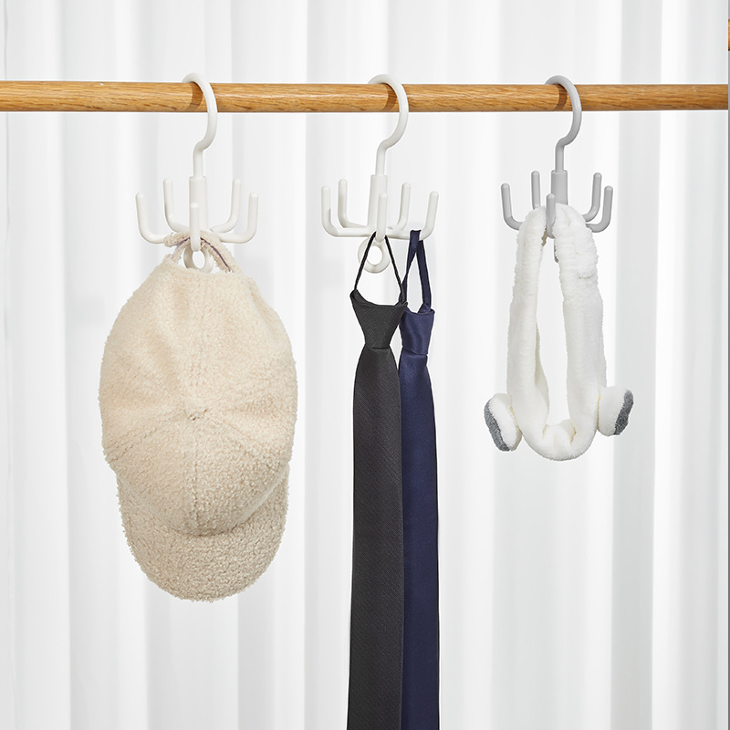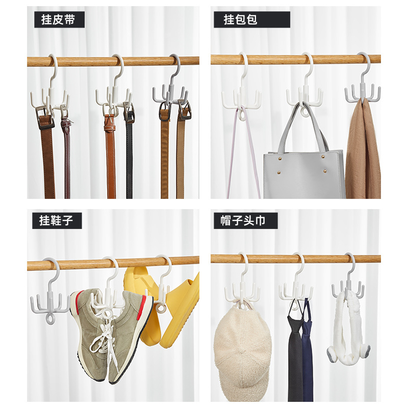 五爪多功能衣帽钩挂免打孔旋转挂钩可叠加s型领带皮带衣物收纳架