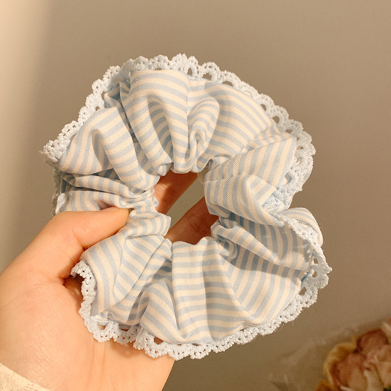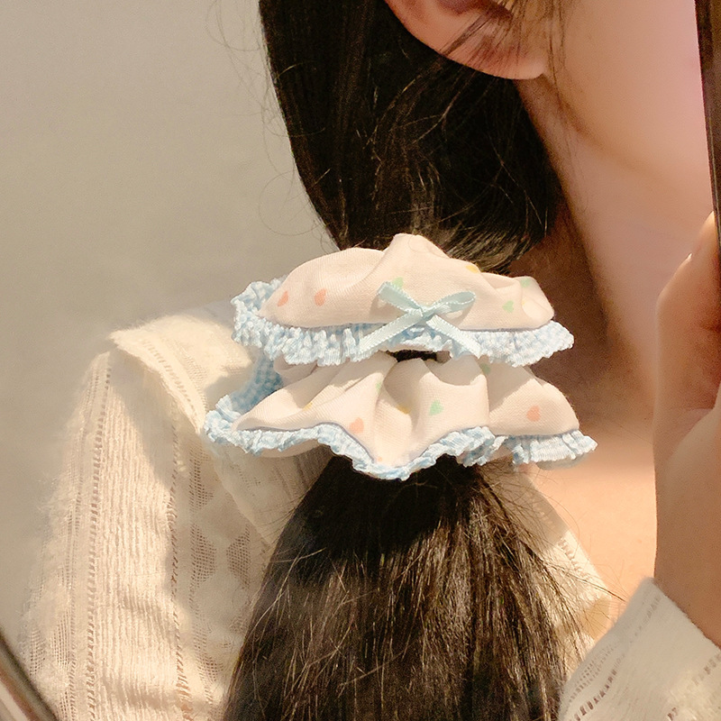 蓝色蝴蝶结蕾丝花边大肠发圈女感韩系大号丸子头发绳发饰头饰