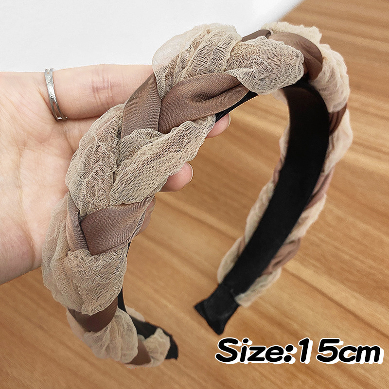 新款欧根纱链条发箍蕾丝编织压发卡气质麻花辫头箍头饰