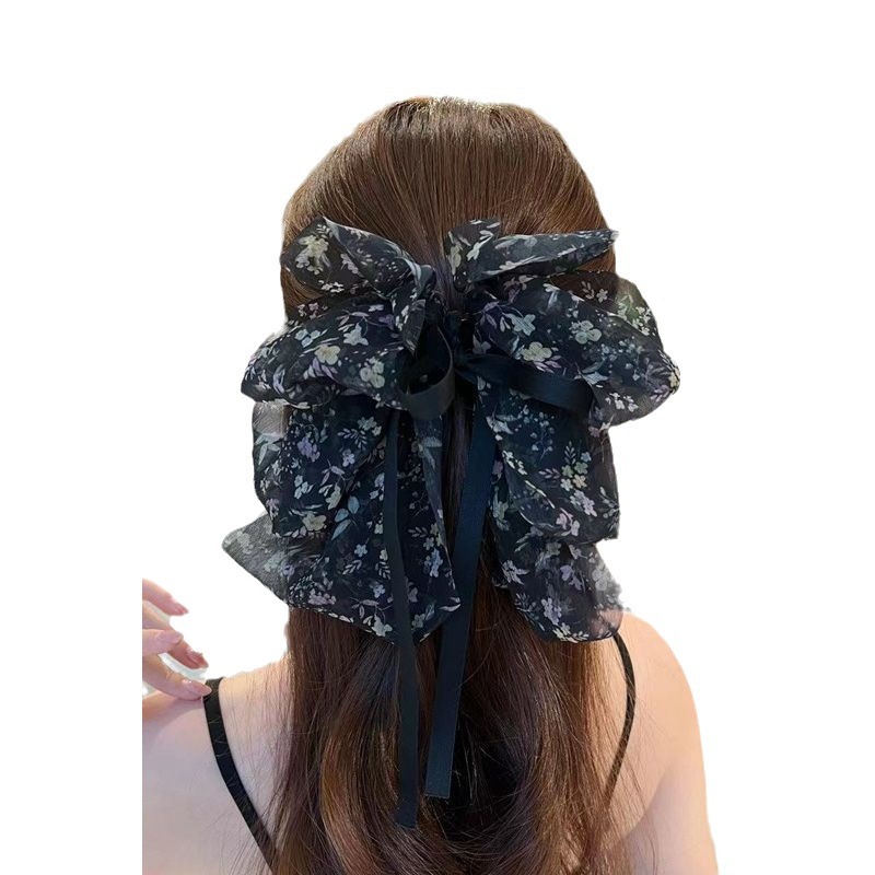 超仙碎花大蝴蝶结飘带抓夹女后脑勺鲨鱼夹子发饰网纱蕾丝盘发发夹