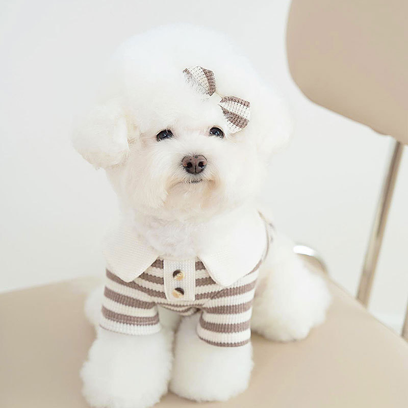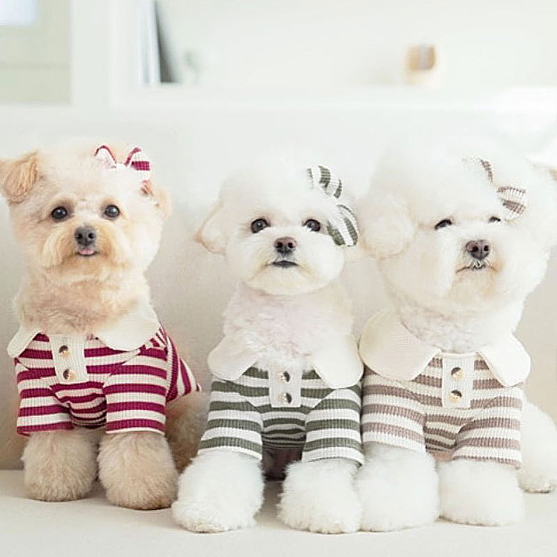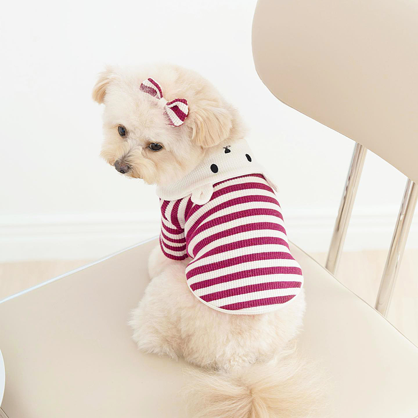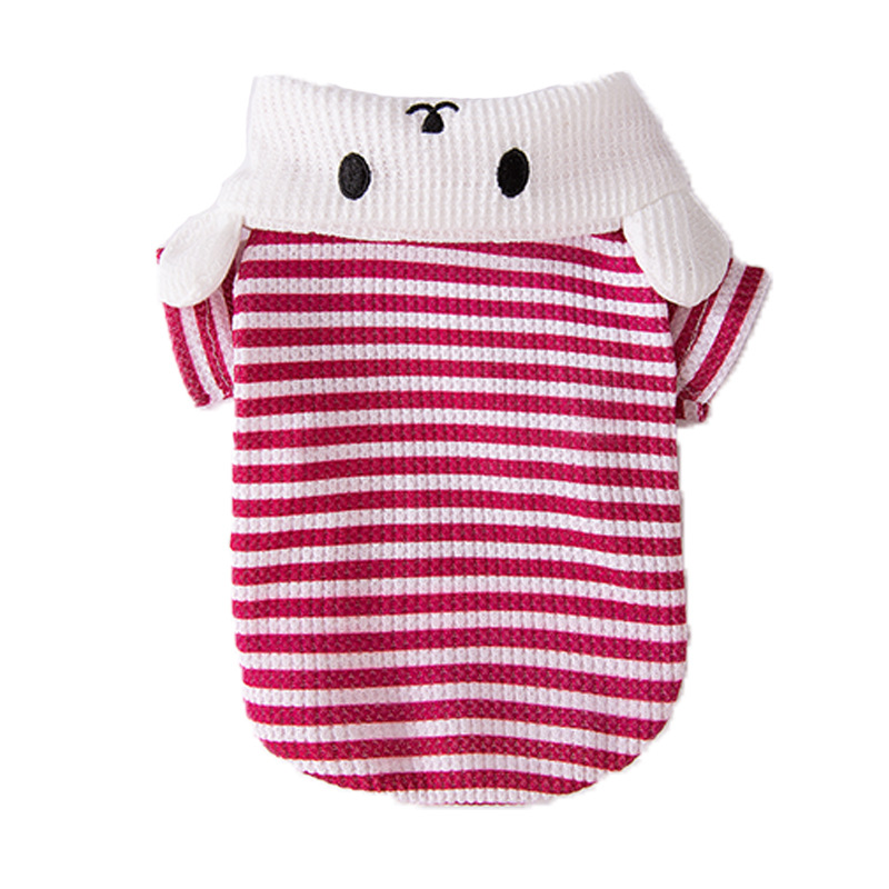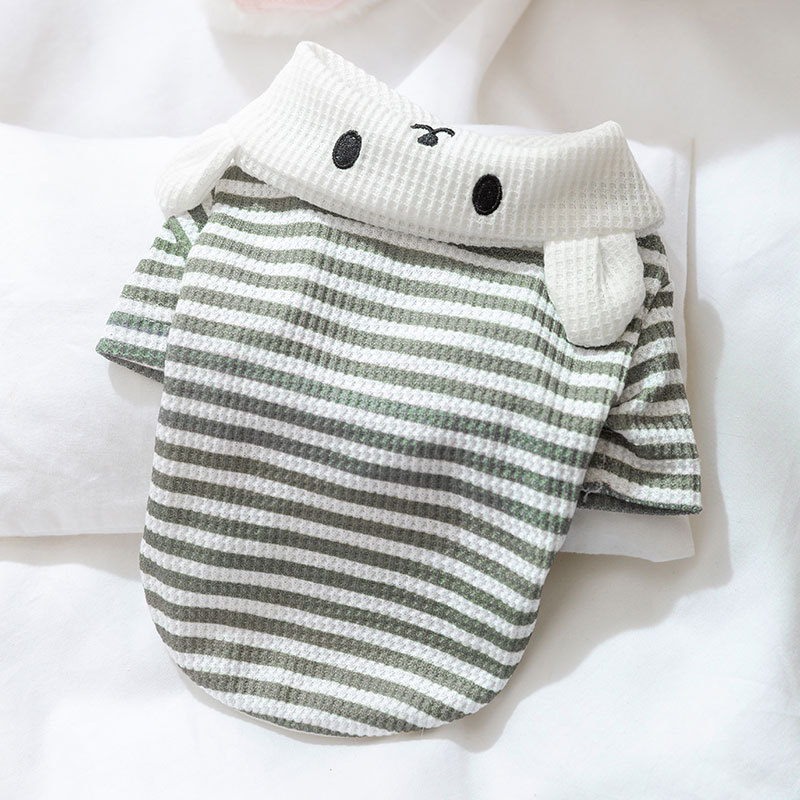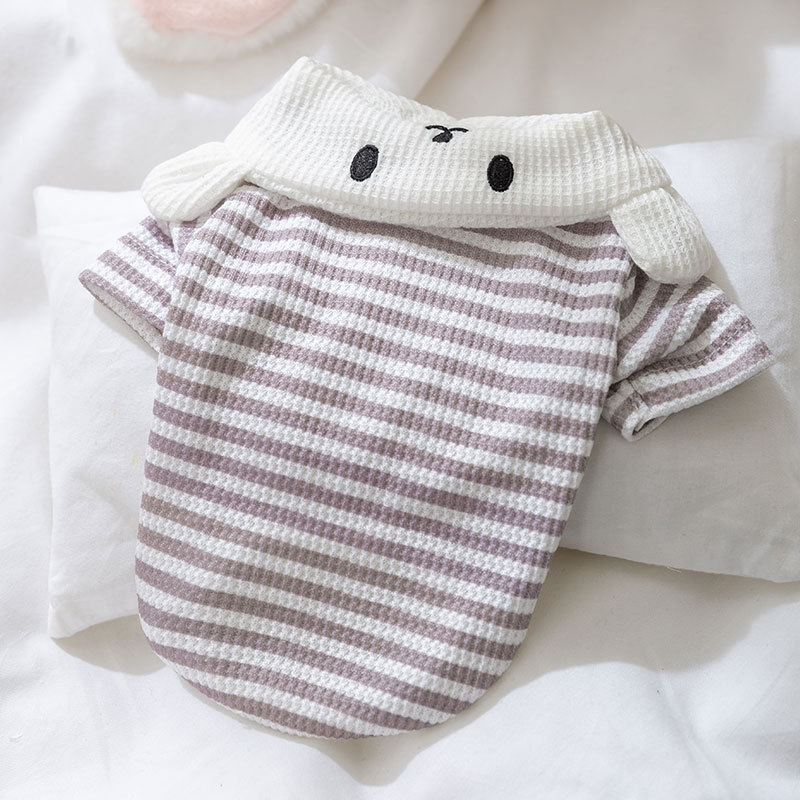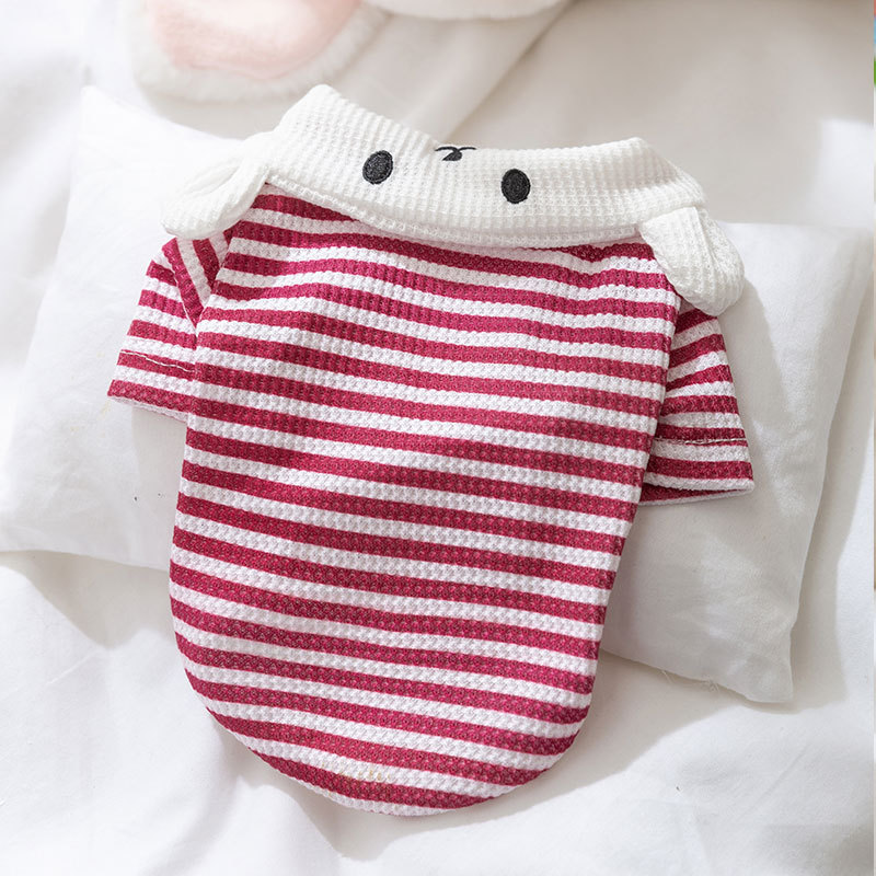 可爱兔子领条纹两脚T恤宠物狗狗衣服春夏季薄款透气猫小型犬服饰