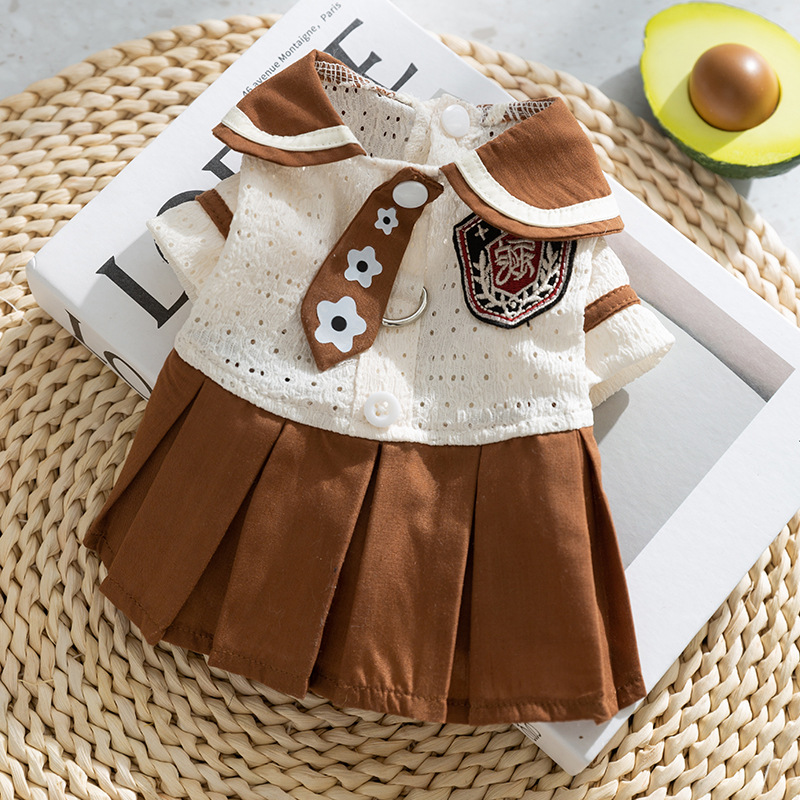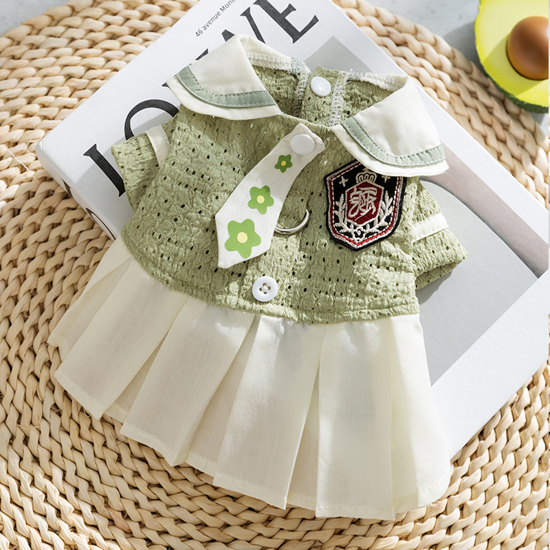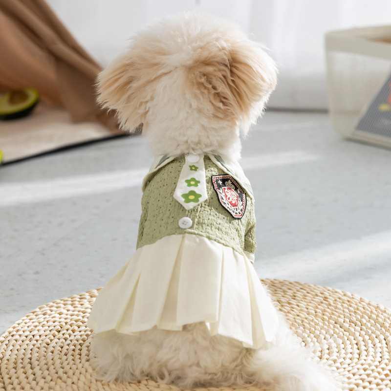 学院风领结可牵引裙狗衣服小型犬泰迪比熊春装吉娃娃夏季宠物裙子