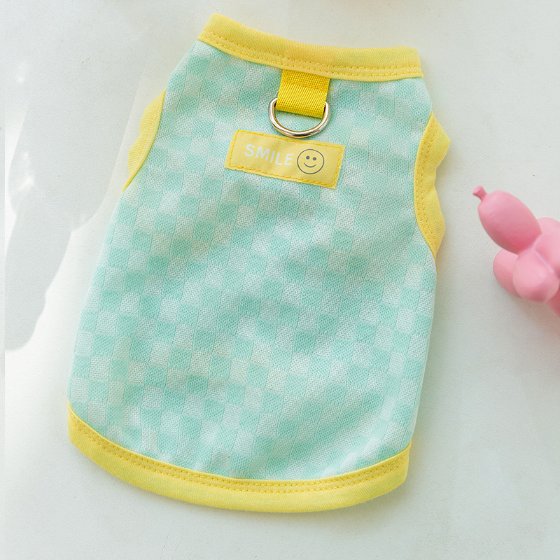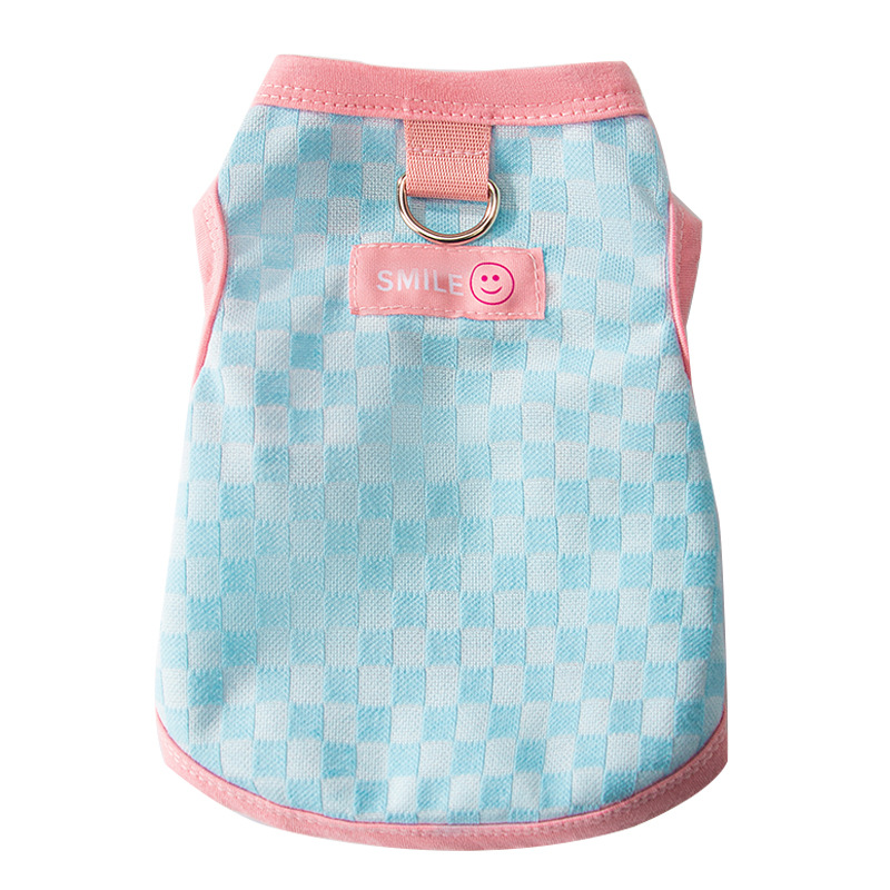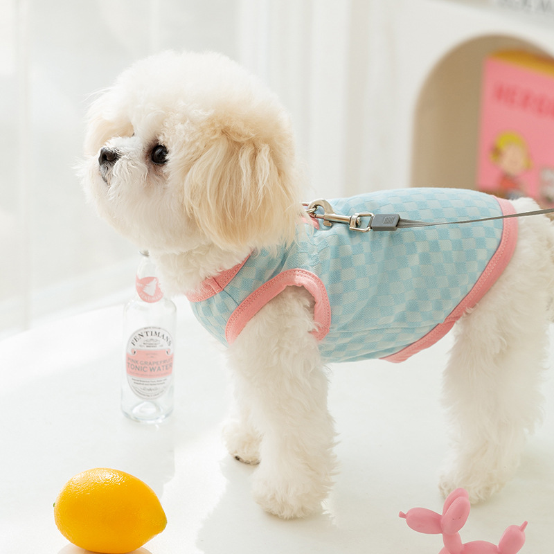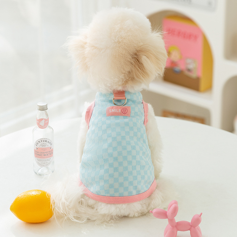 休闲棋盘格背心小型犬带牵引衣服狗狗春夏装小狗夏季薄款宠物服装