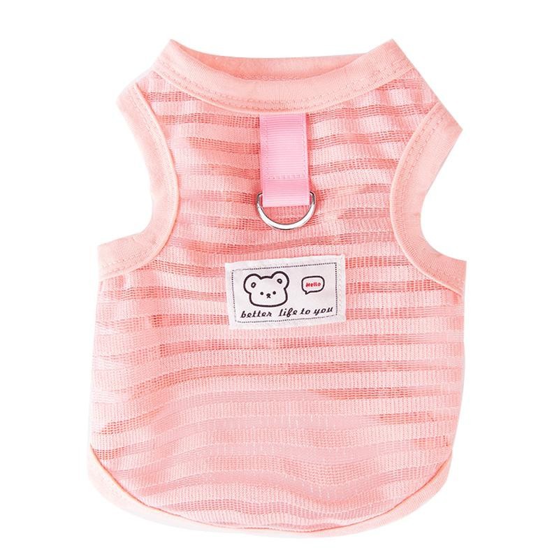 春夏季轻薄镂空条纹透气宠物背心可牵引小熊服装狗狗猫咪两脚衣服