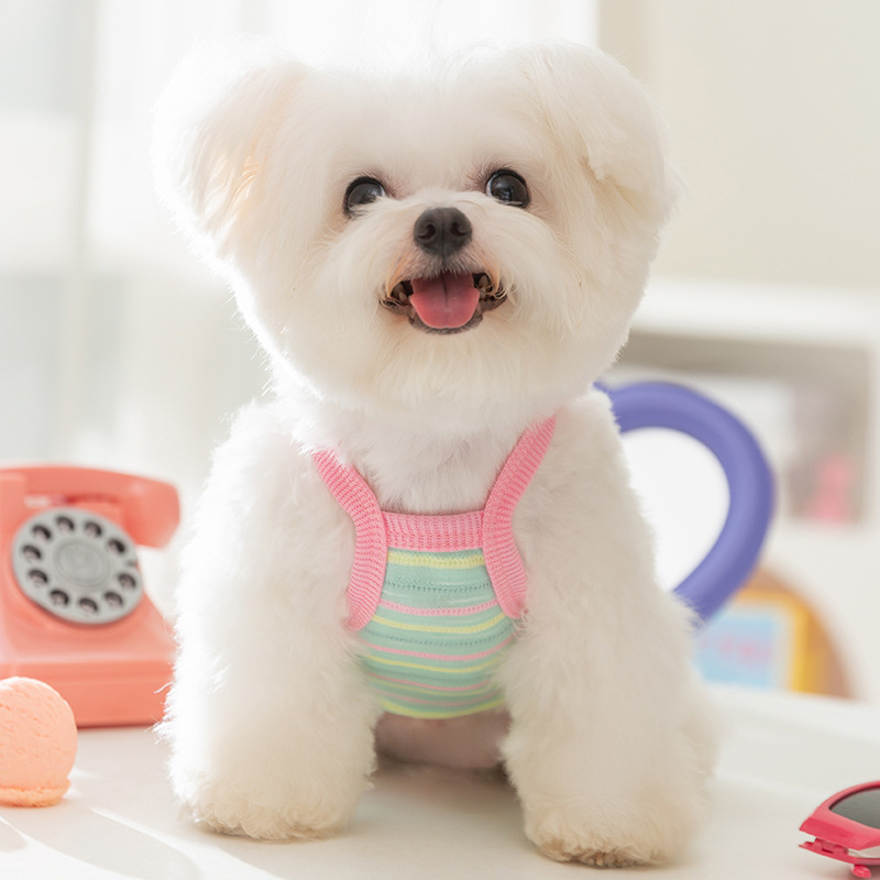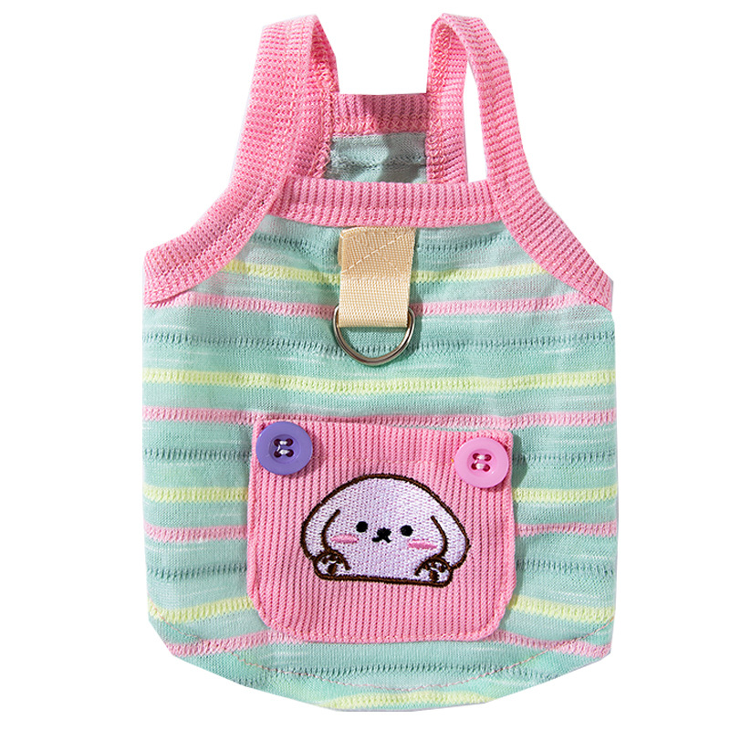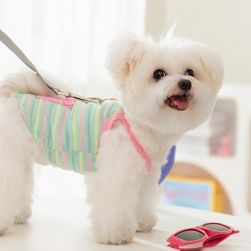 春夏新款透气狗狗衣服可爱彩色条纹牵引吊带背心比熊泰迪宠物服装