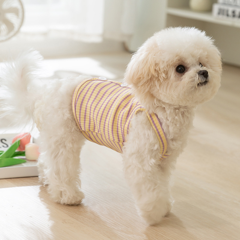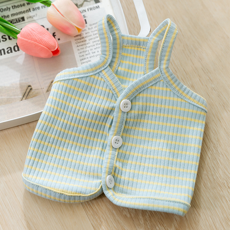 清新条纹吊带狗狗春夏透气夏季衣服宠物服装猫咪两脚衣猫猫服饰