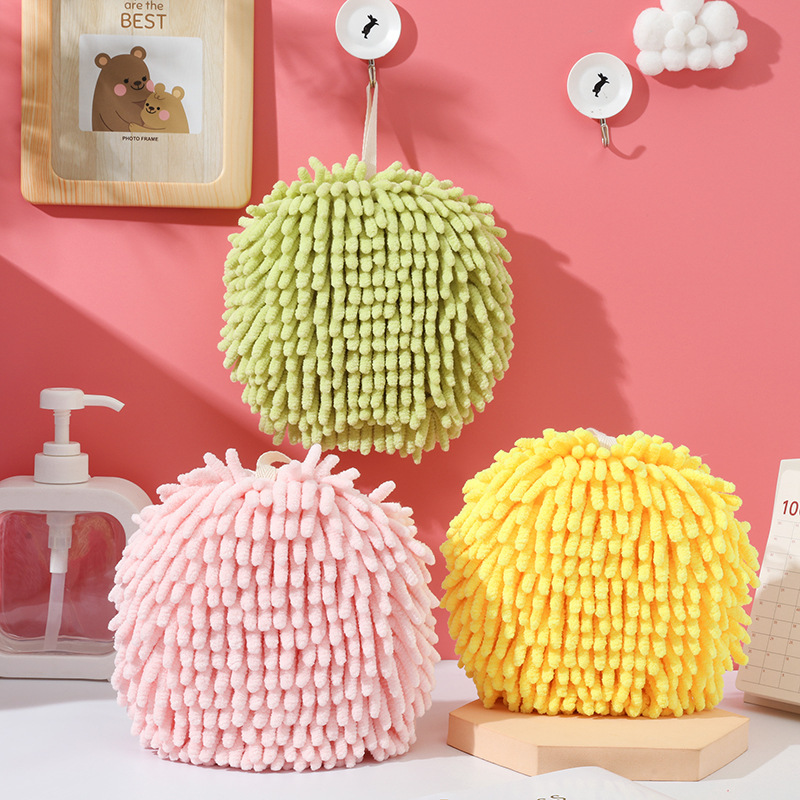 家用创意挂式雪尼尔擦手球厨房加厚吸水速干卫生间抹布擦手巾