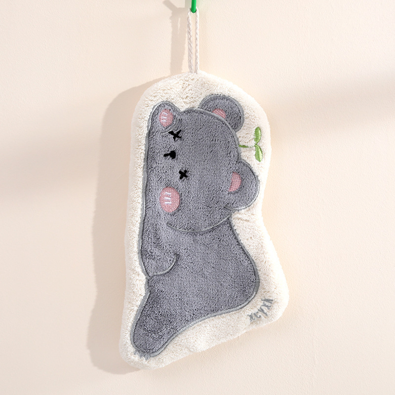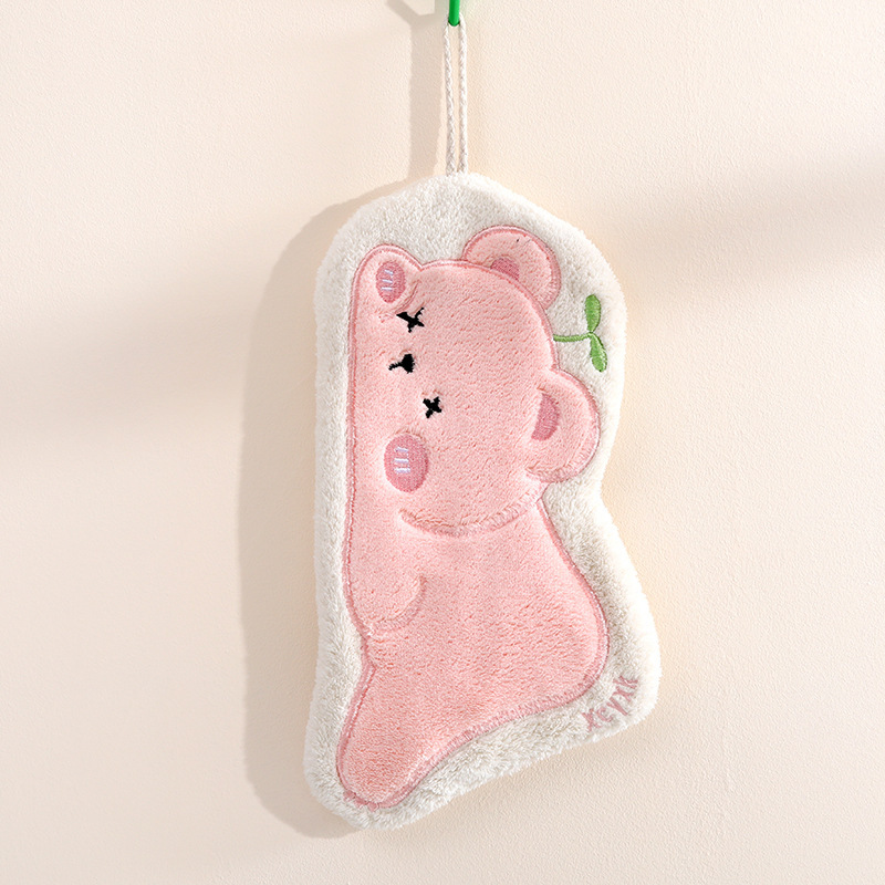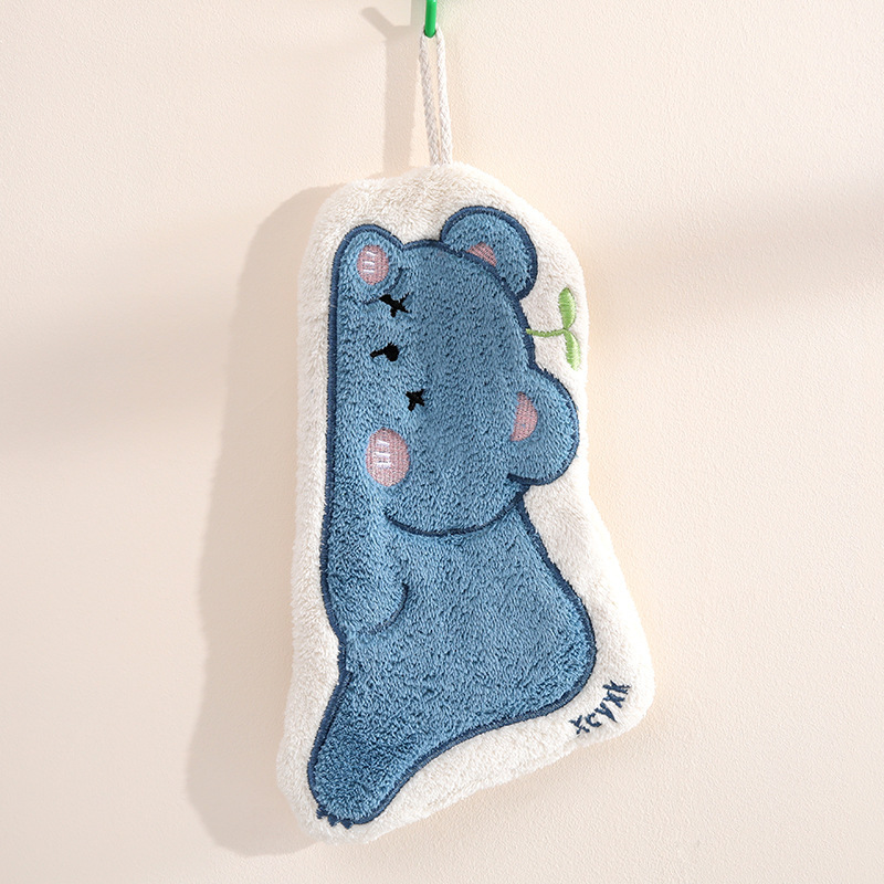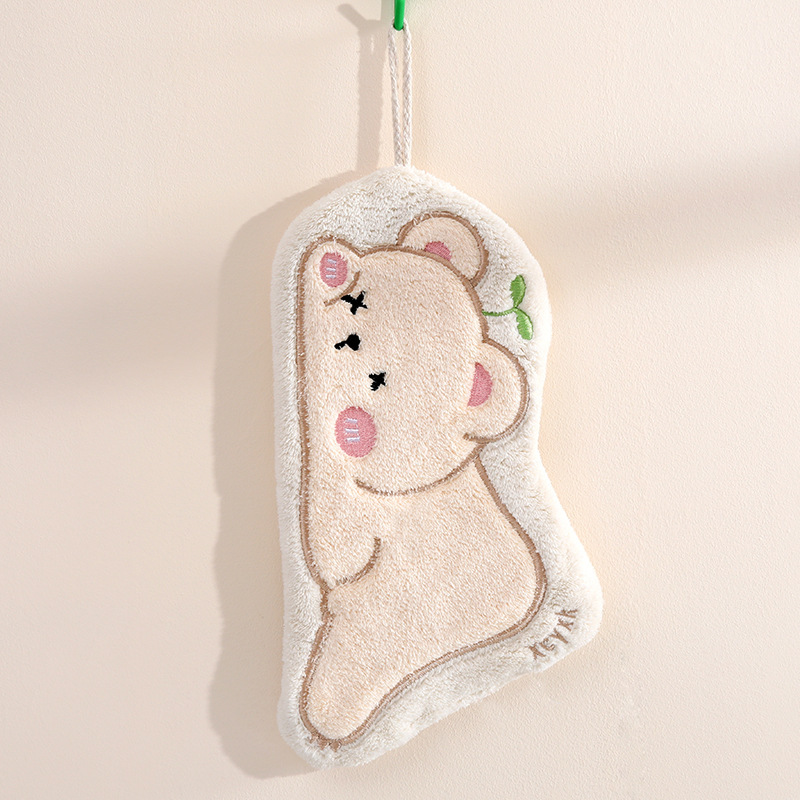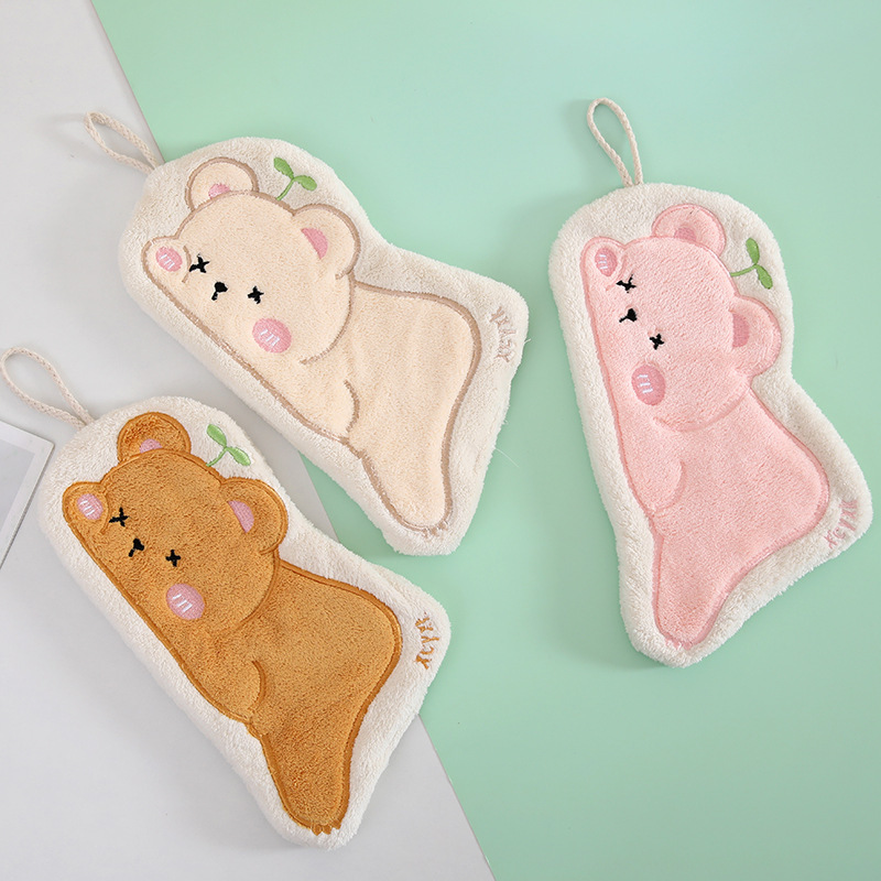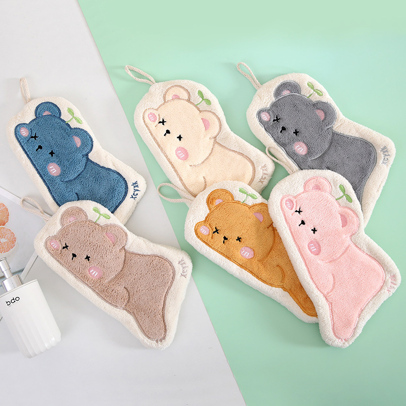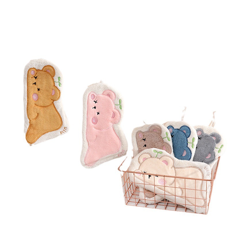 可挂式擦手巾卡通小毛巾珊瑚绒吸水抹布擦手毛巾儿童挂式厨房小熊