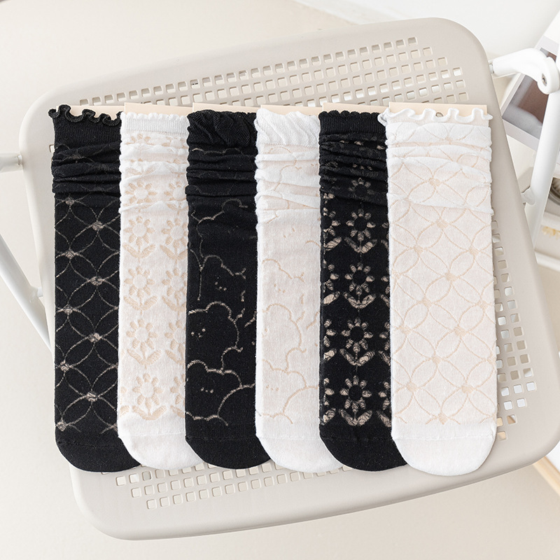 白色袜子女日系jk袜中筒袜花边袜春夏薄款堆堆袜黑袜子木耳边女袜