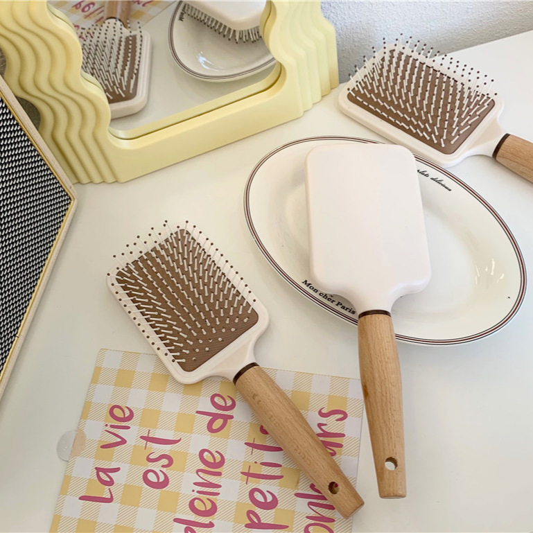 韩国ins风简约气囊梳木柄防静电卷发按摩梳高颜值梳子