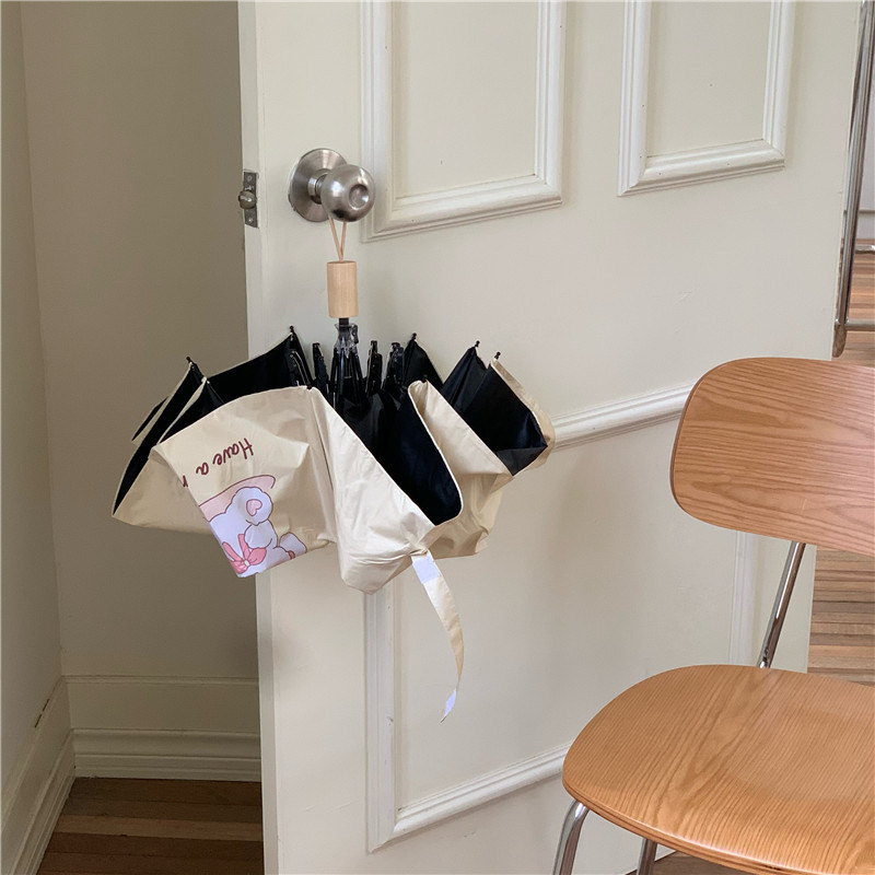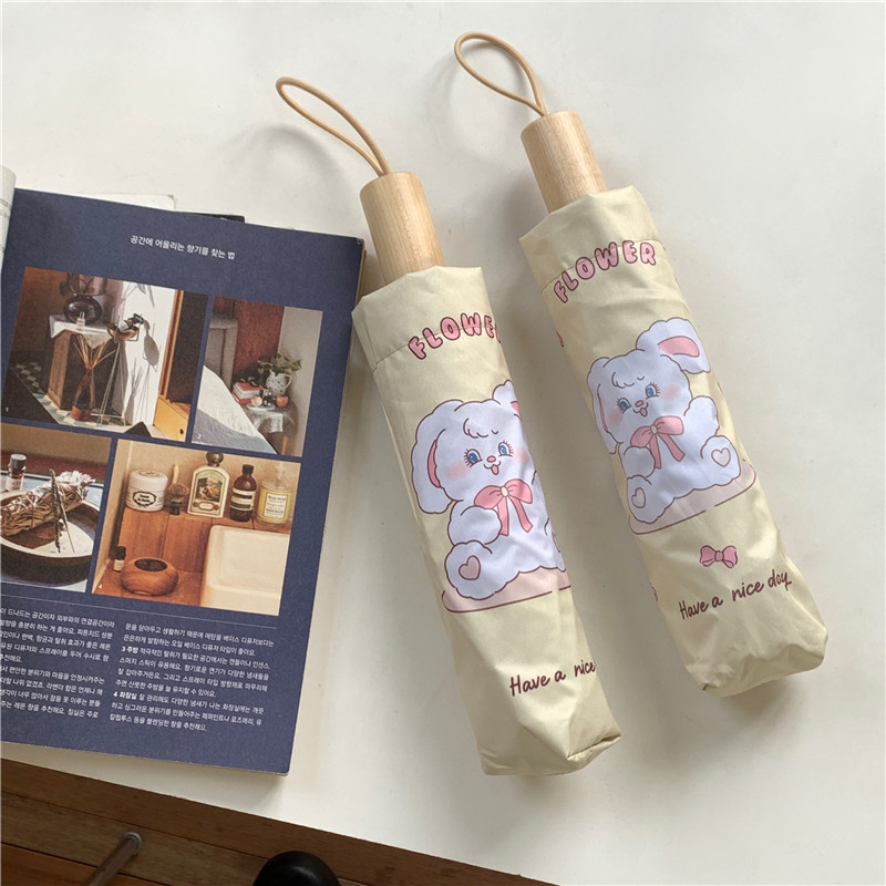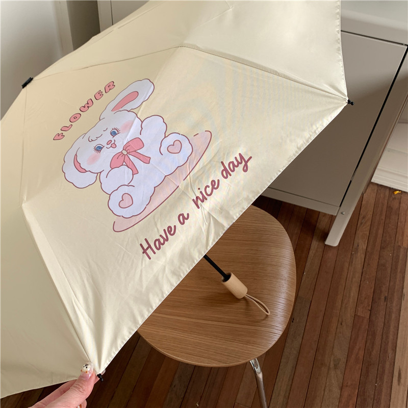 原创郁金香兔子黑胶雨伞晴雨两用遮阳伞太阳伞防紫外线三折伞