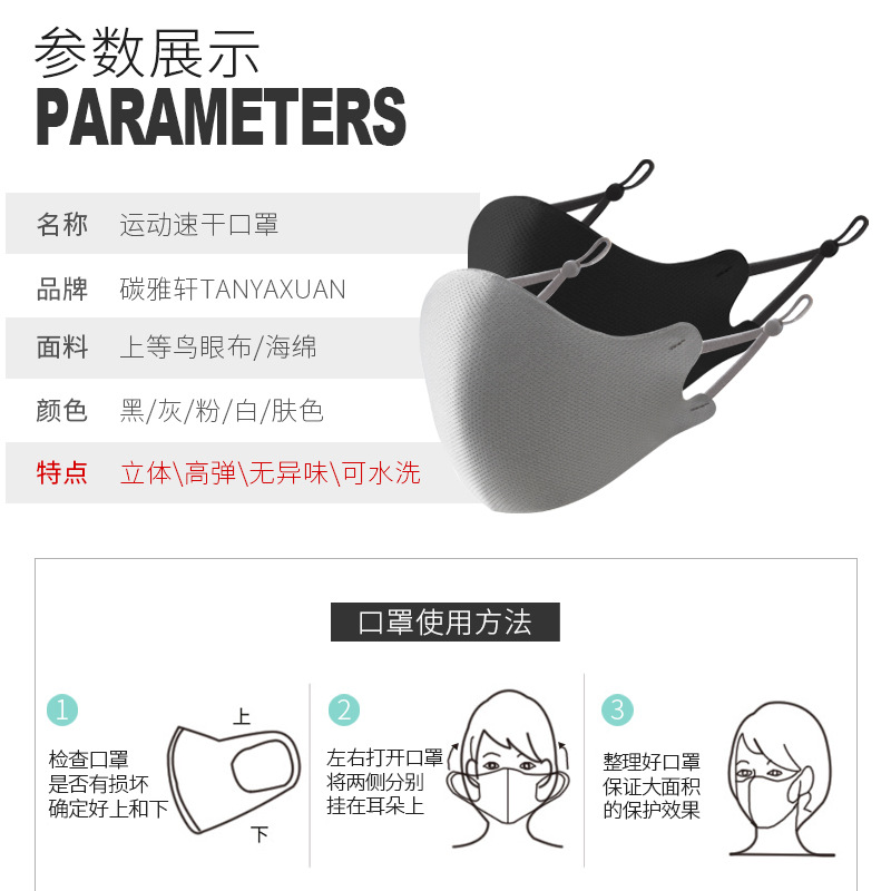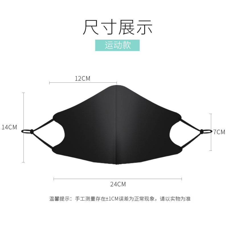 双层速干海绵口罩黑运动健身透气防护面罩可水洗立体
