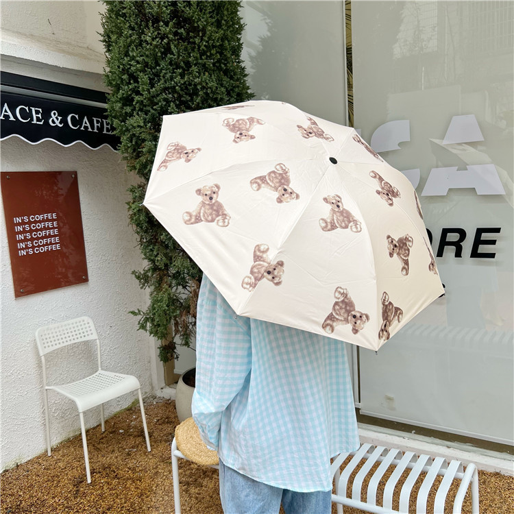 自制款泰迪熊防晒伞少女心晴雨两用太阳伞便携防紫外线雨伞黑胶伞