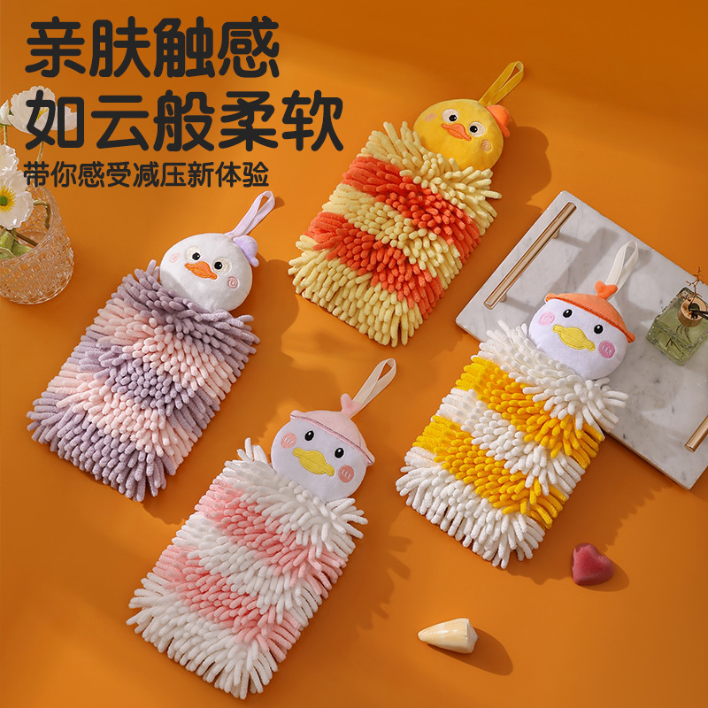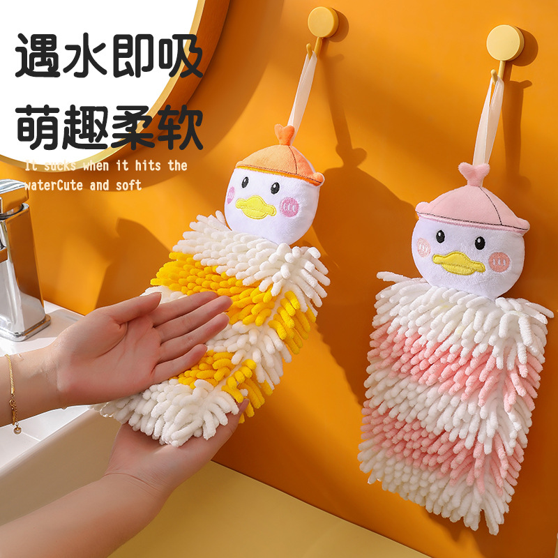 创意擦手巾可爱儿童卡通可挂式吸水厨房卫生间雪尼尔擦手毛巾加厚