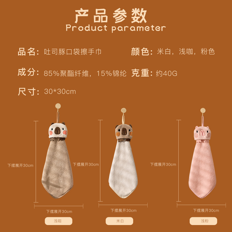水豚擦手巾挂式卡通可爱加厚厨房卫生间家用吸水速干儿童抹布毛巾