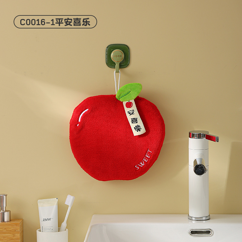 擦手巾挂式可爱卡通水果儿童擦手巾珊瑚绒厨房吸水擦手布小毛巾