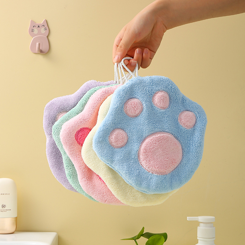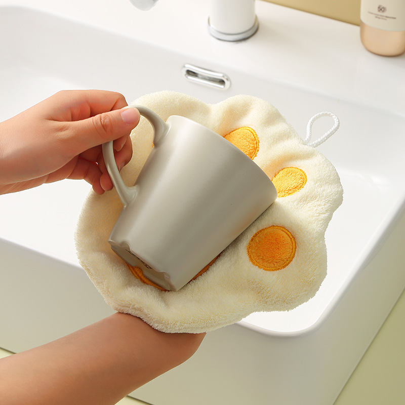擦手巾可挂式猫咪脚印卡通动物擦手巾擦桌洗碗成人擦手巾