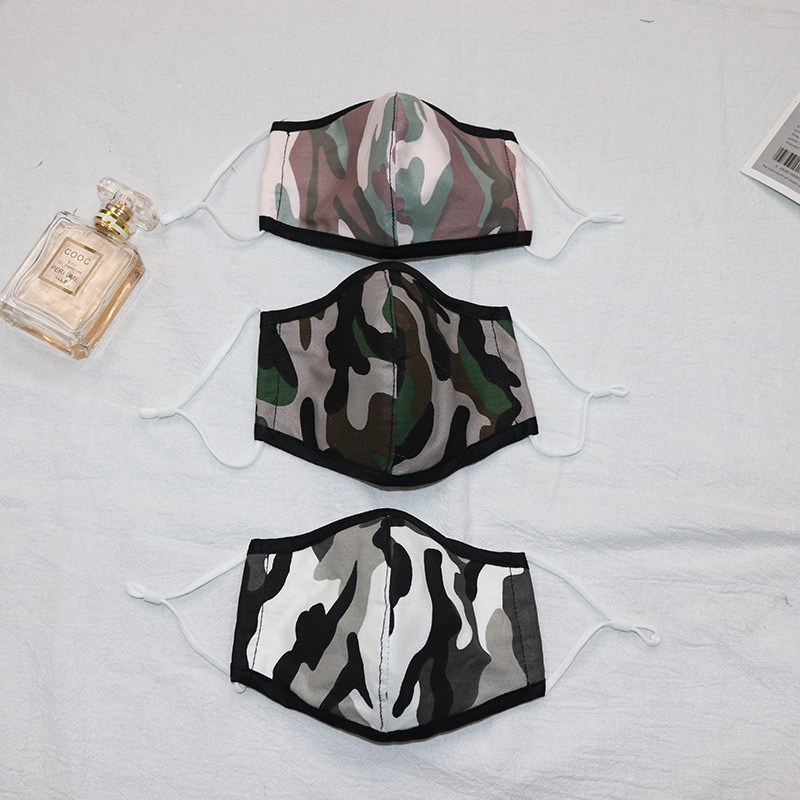 立体防粉尘迷彩可调节3层棉布口罩 时尚可水洗熔喷布骑行面罩