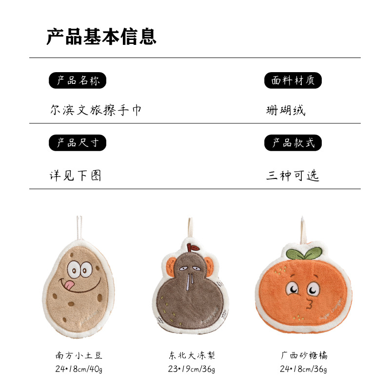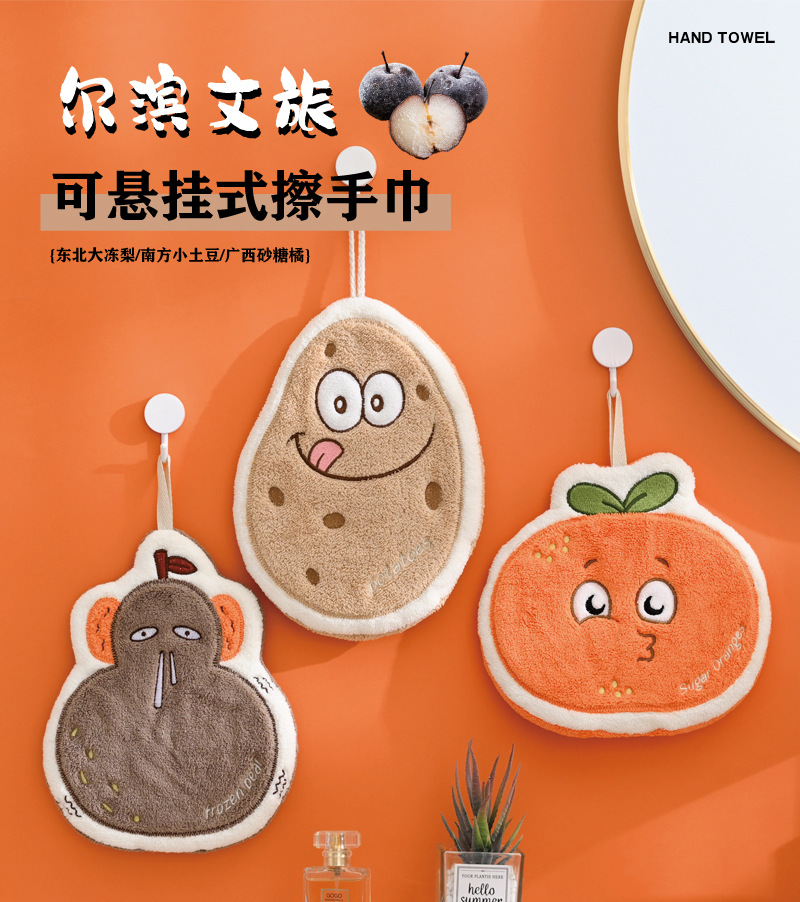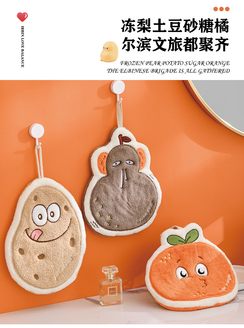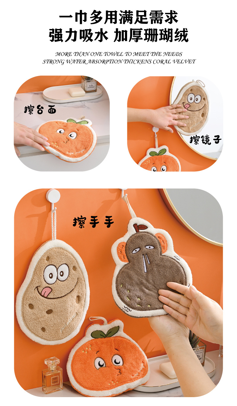 南方小土豆擦手巾可挂珊瑚绒吸水毛巾厨房擦手毛巾卡通挂巾抹布