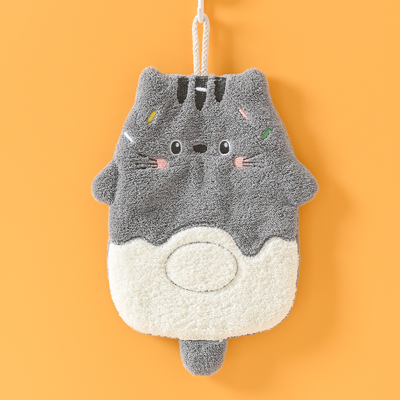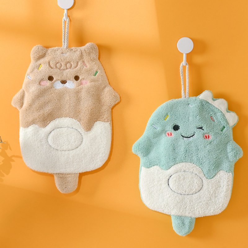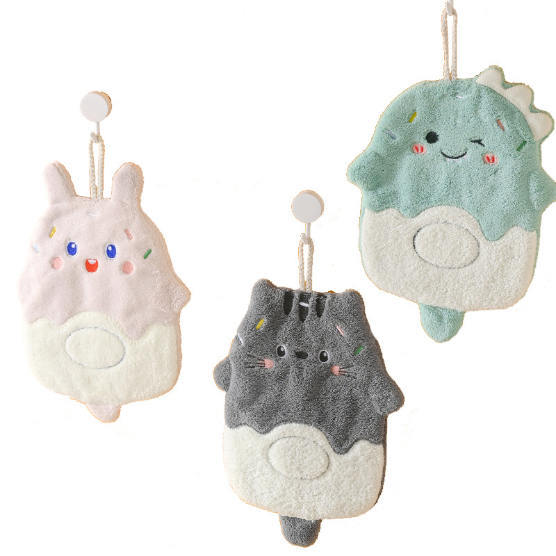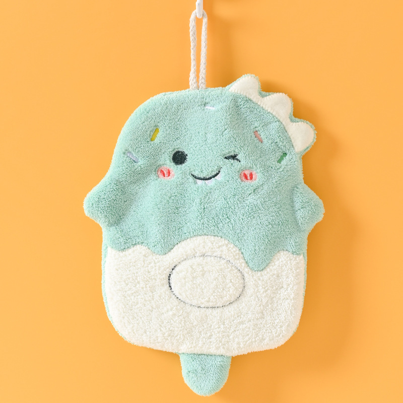 双层擦手巾卡通可爱珊瑚绒手帕厨房吸水速干儿童挂式家用擦手毛巾