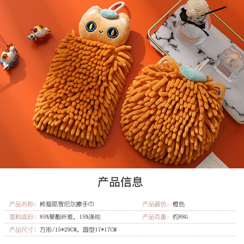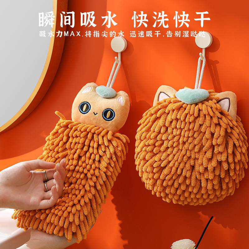可挂式雪尼尔擦手巾厨房加厚吸水速干毛巾卫生间卡通可爱儿童抹布