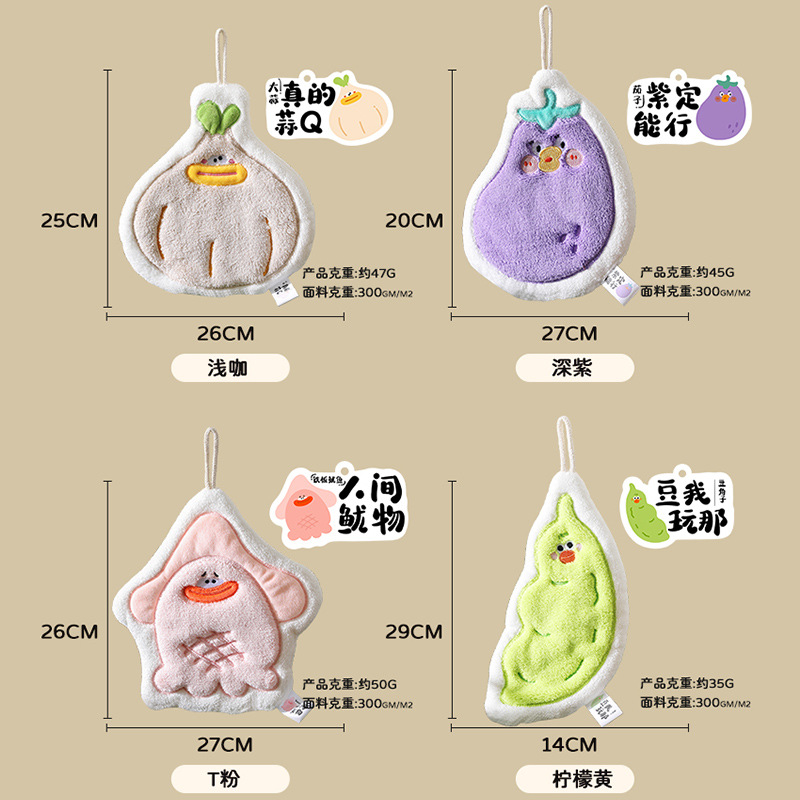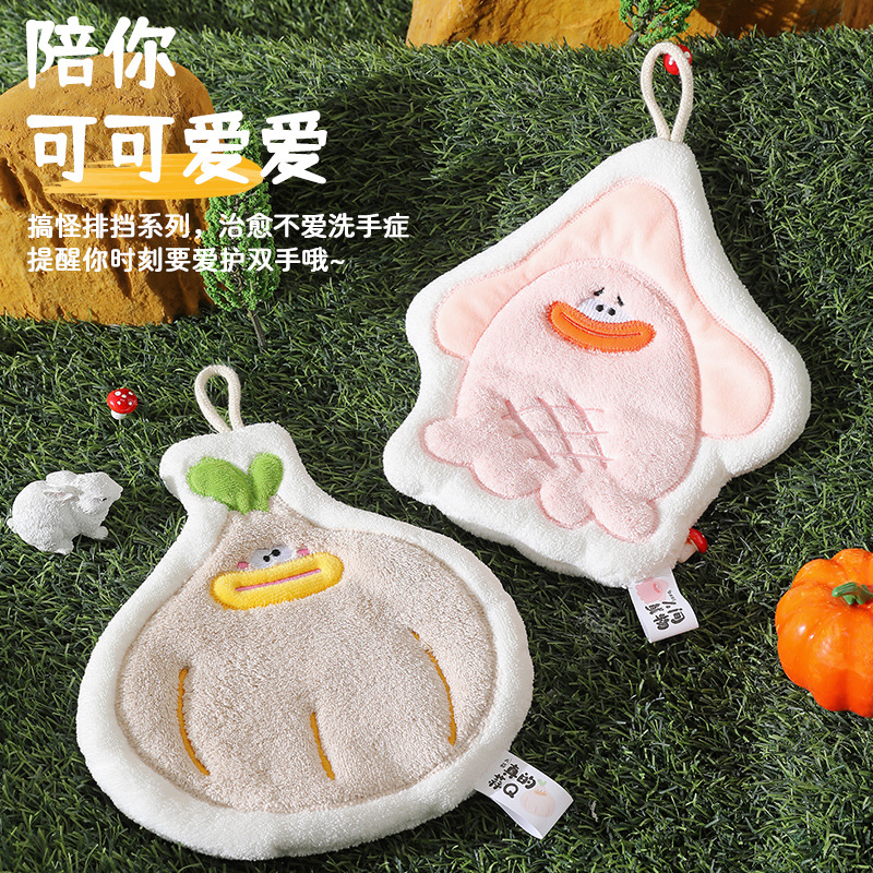 可爱卡通擦手巾悬挂式三层加厚珊瑚绒厨房卫生间擦手速干毛巾手帕