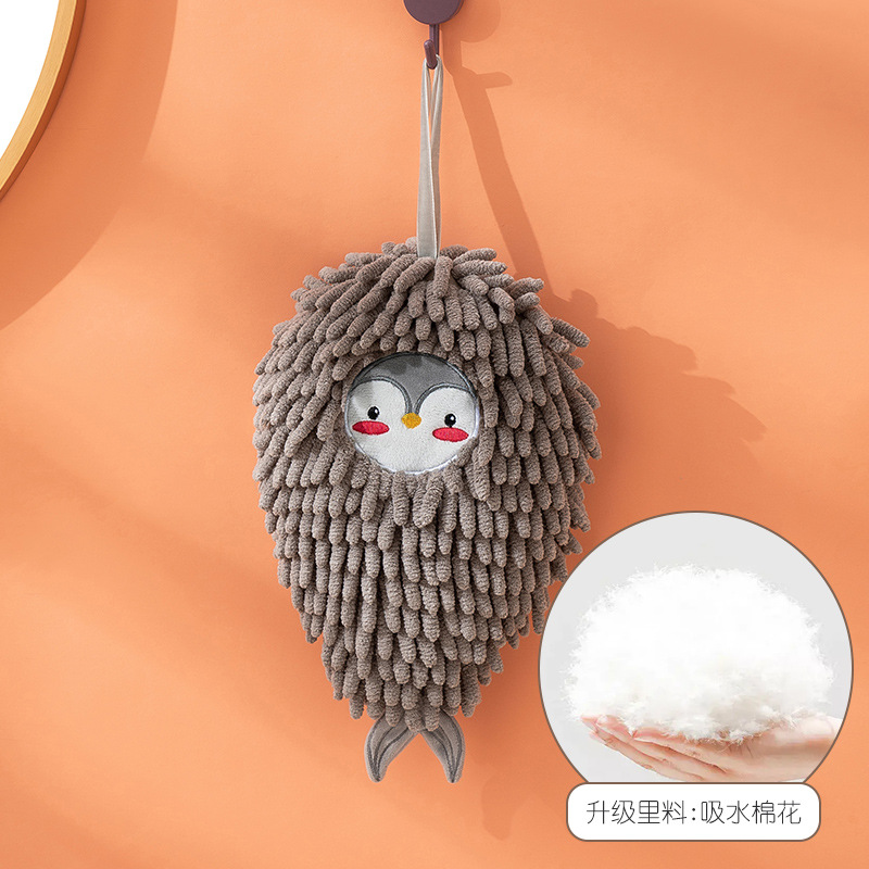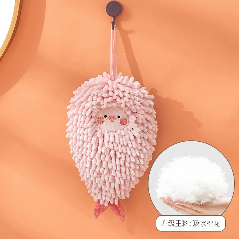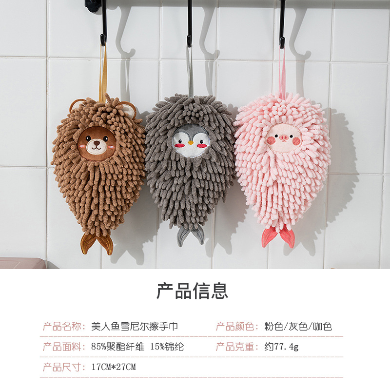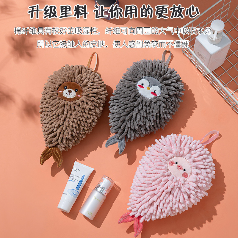 可爱动物雪尼尔擦手球吸水速干厨房卫生间加厚挂式擦手巾儿童毛巾