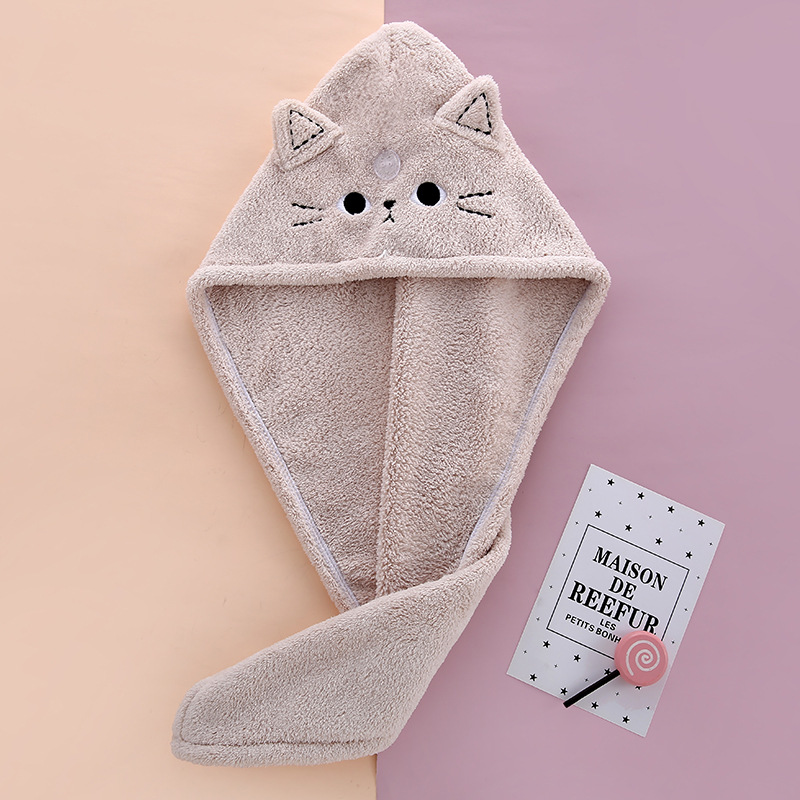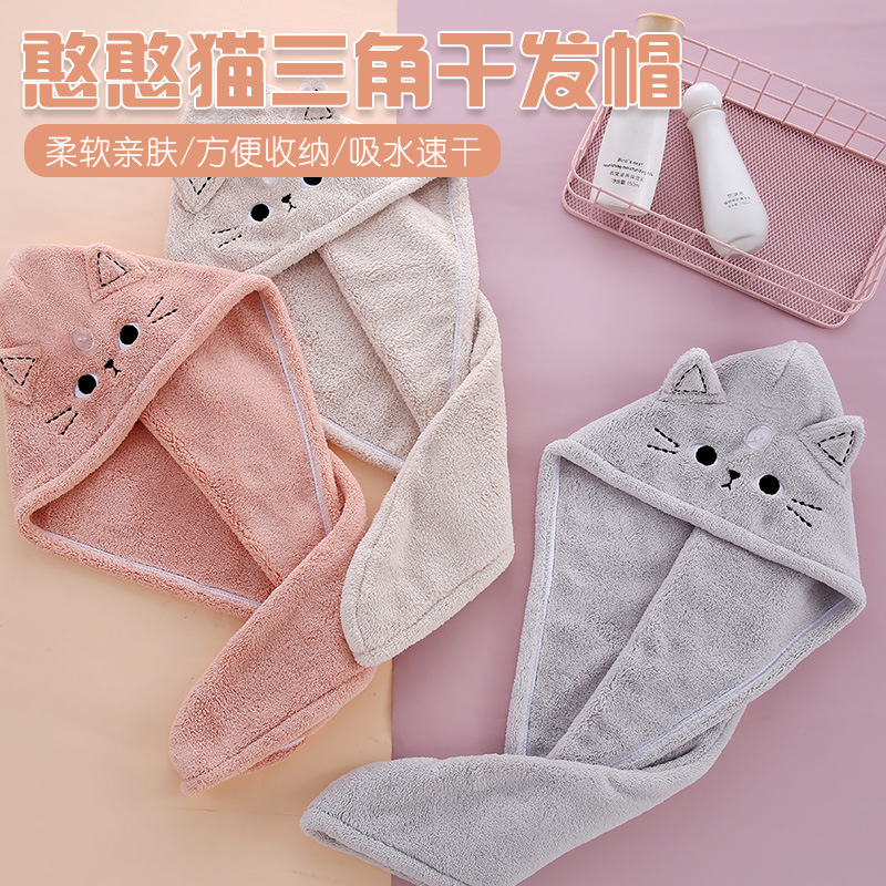 新款可爱猫咪卡通干发帽珊瑚绒吸水速干加厚包头巾浴帽干发巾