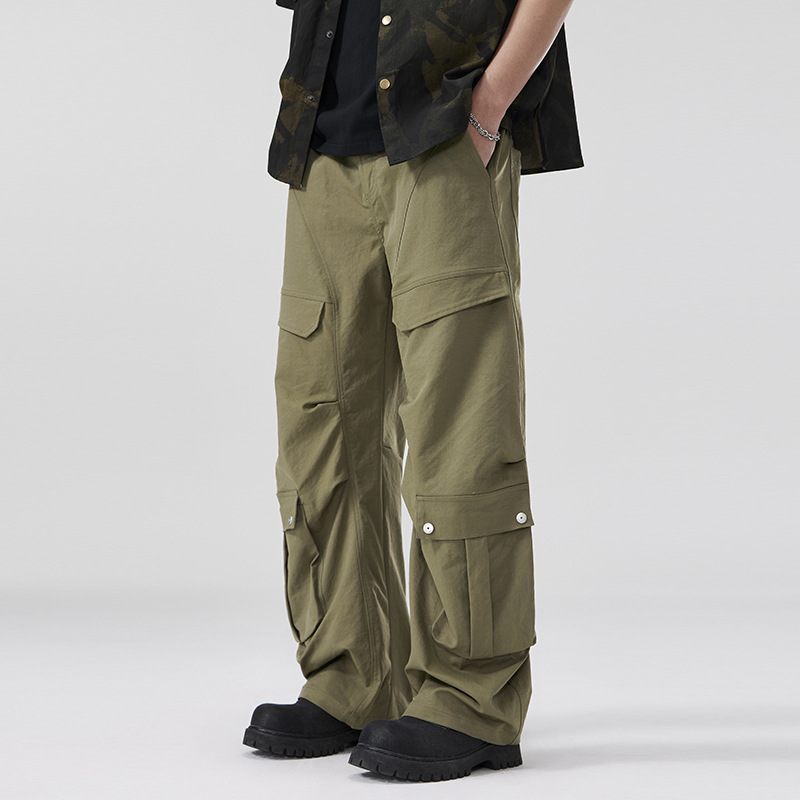 美式高街hiphop设计感工装弯刀裤男宽松直筒春夏季多口袋休闲长裤