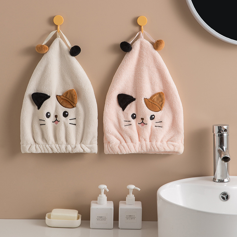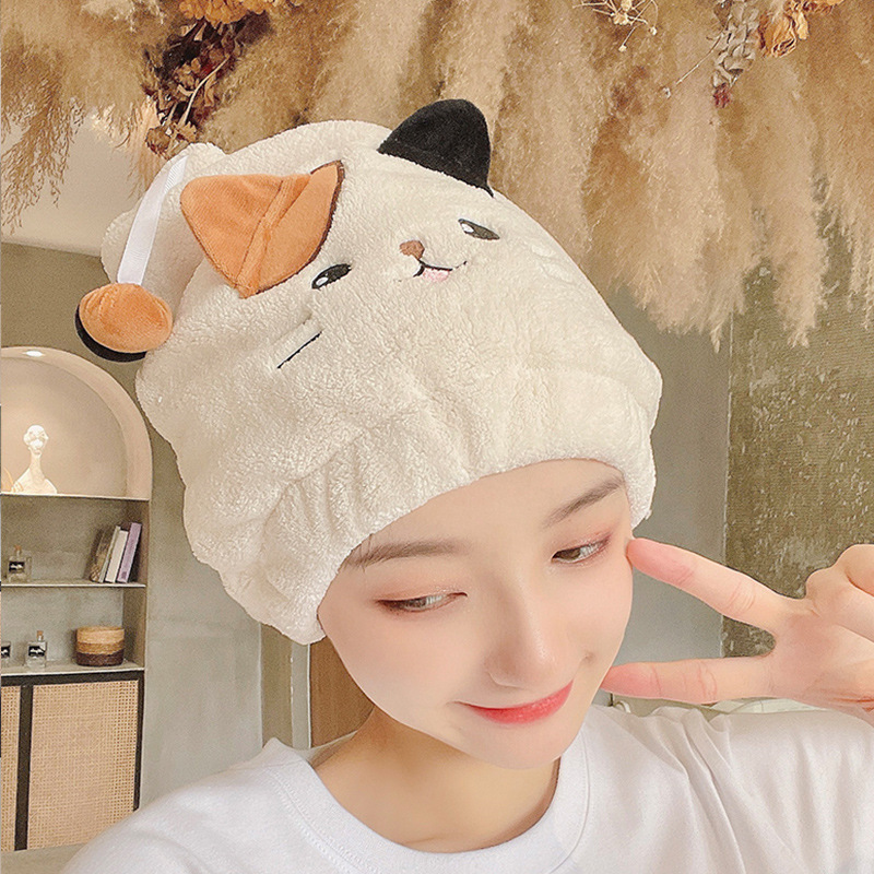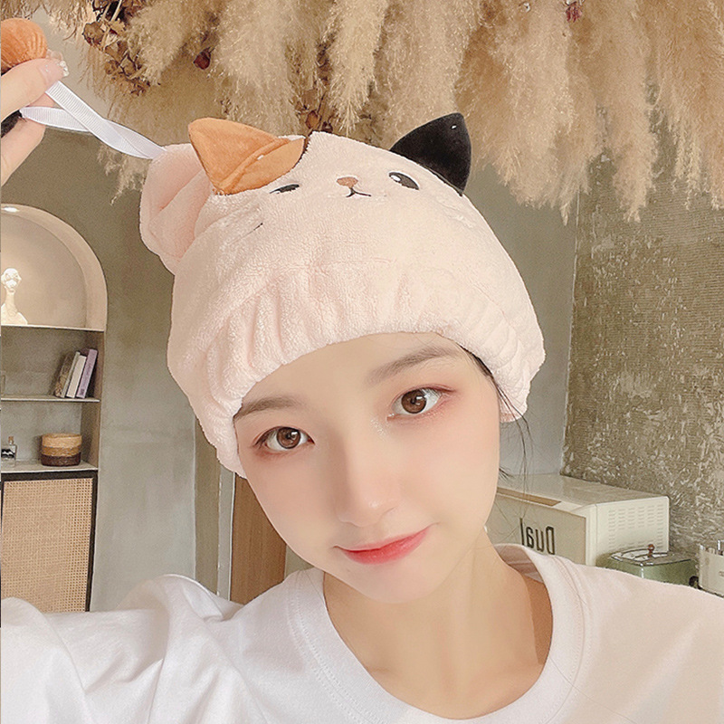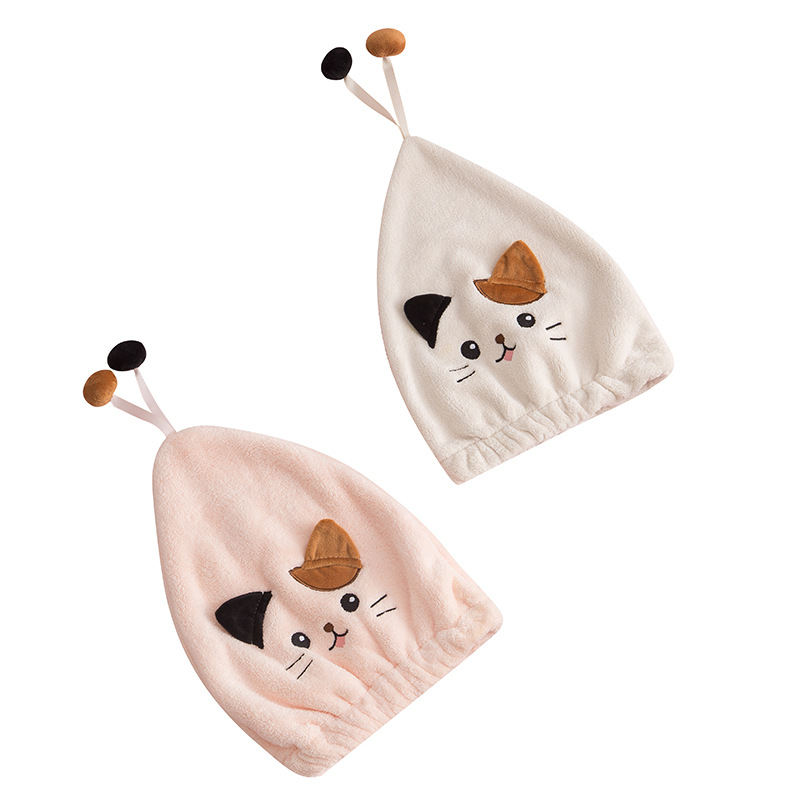 卡通猫咪珊瑚绒干发帽吸水速两用干发巾女纤维加厚公主帽