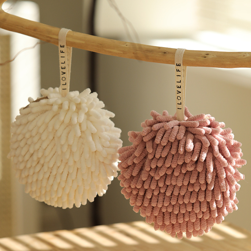 日式超细纤维雪尼尔擦手球 可爱挂式干手球厨房卫生间圆形擦手布
