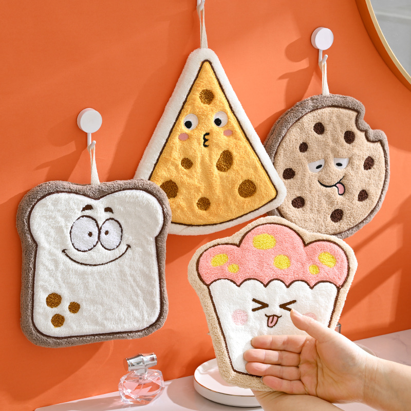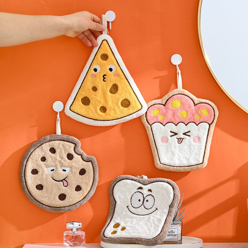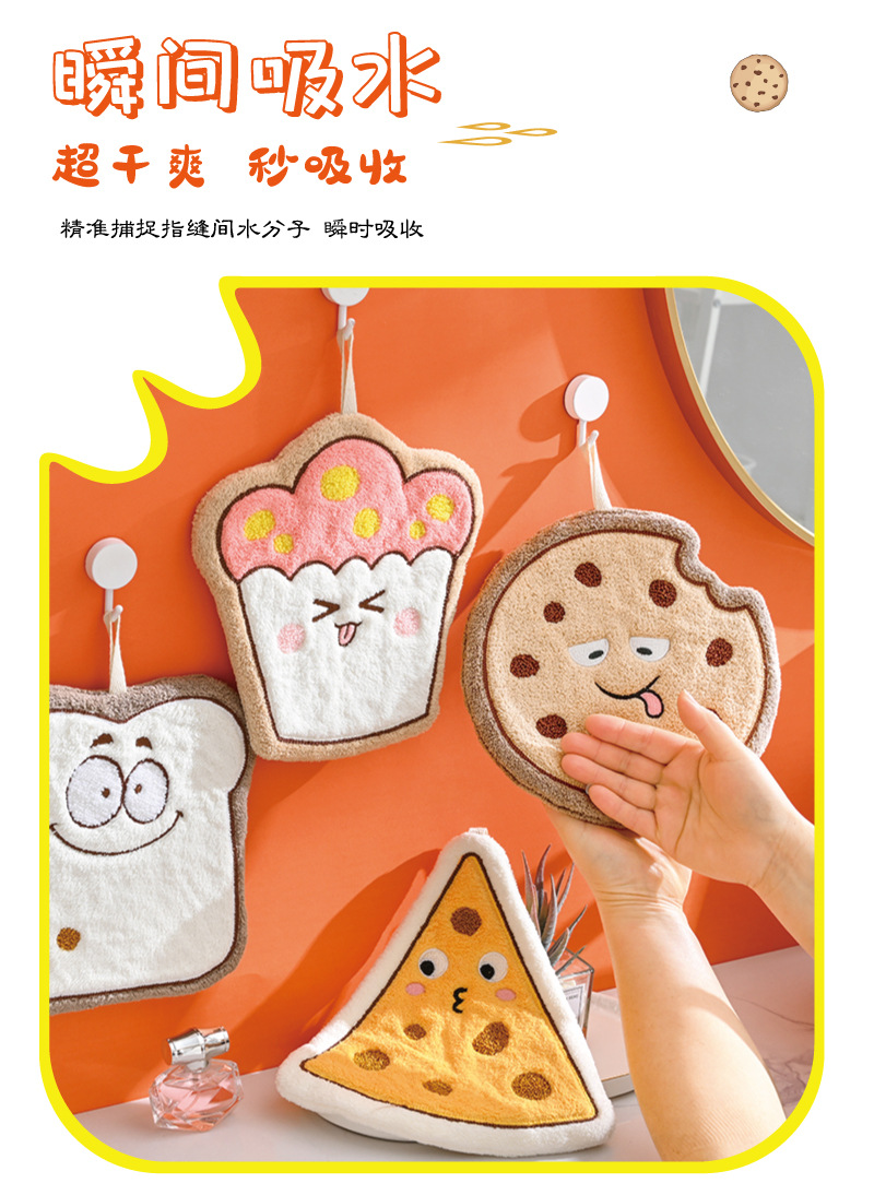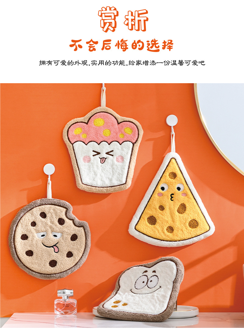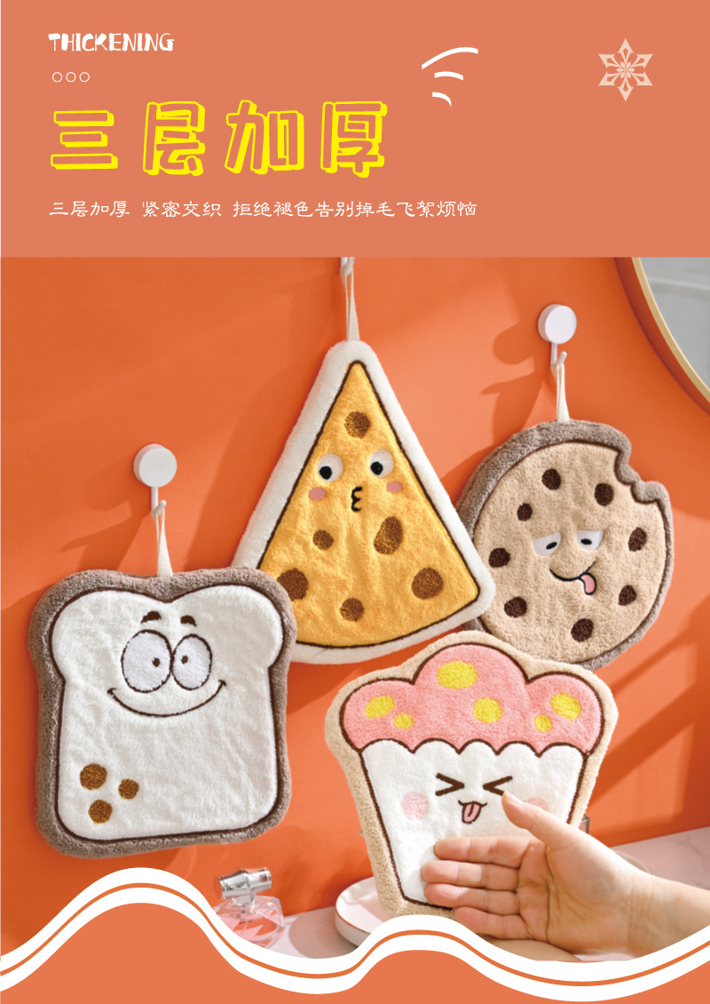 韩版可爱卡通擦手巾挂式三层加厚珊瑚绒厨房擦手速干毛巾