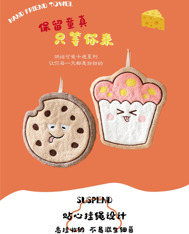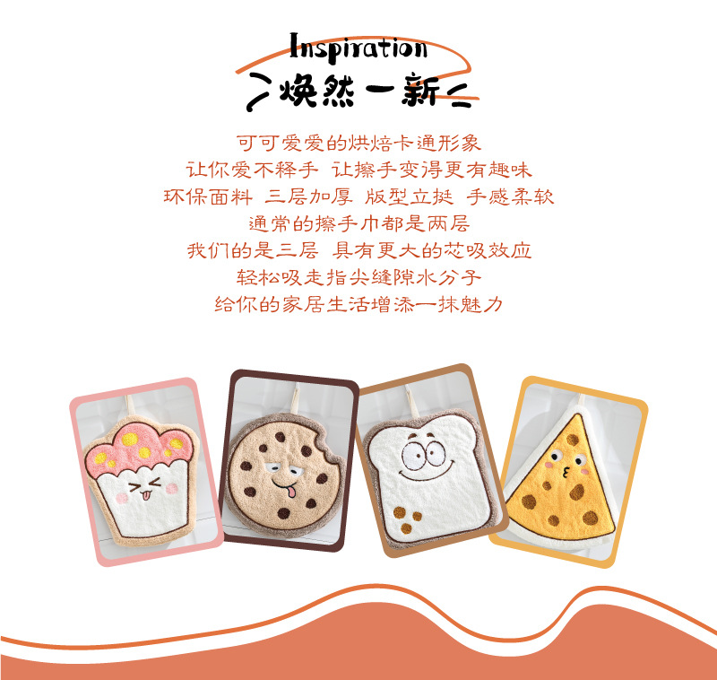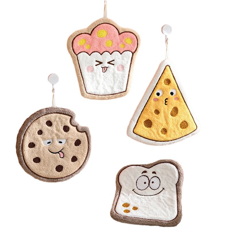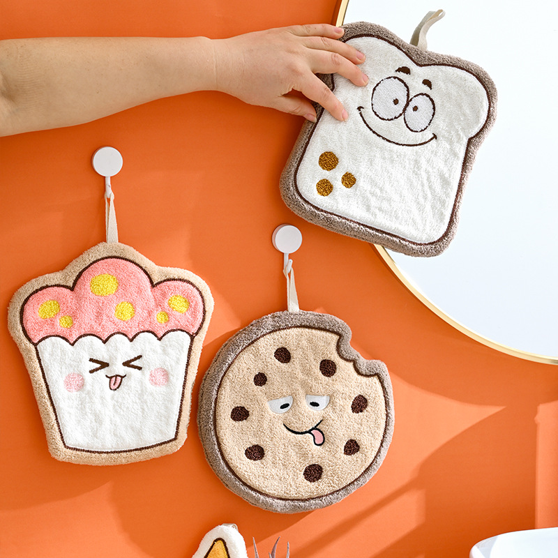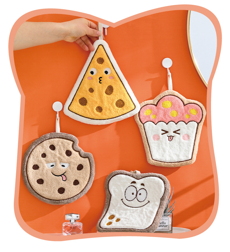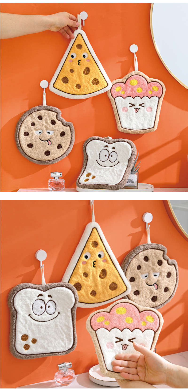 韩版可爱卡通擦手巾挂式三层加厚珊瑚绒厨房擦手速干毛巾