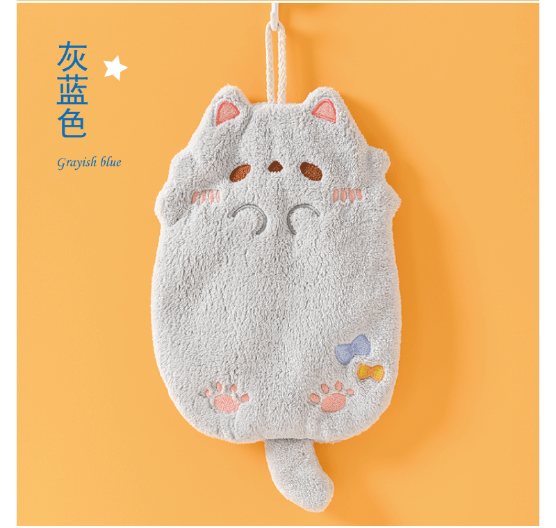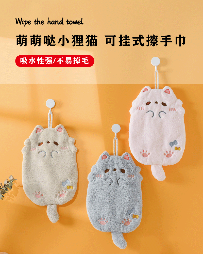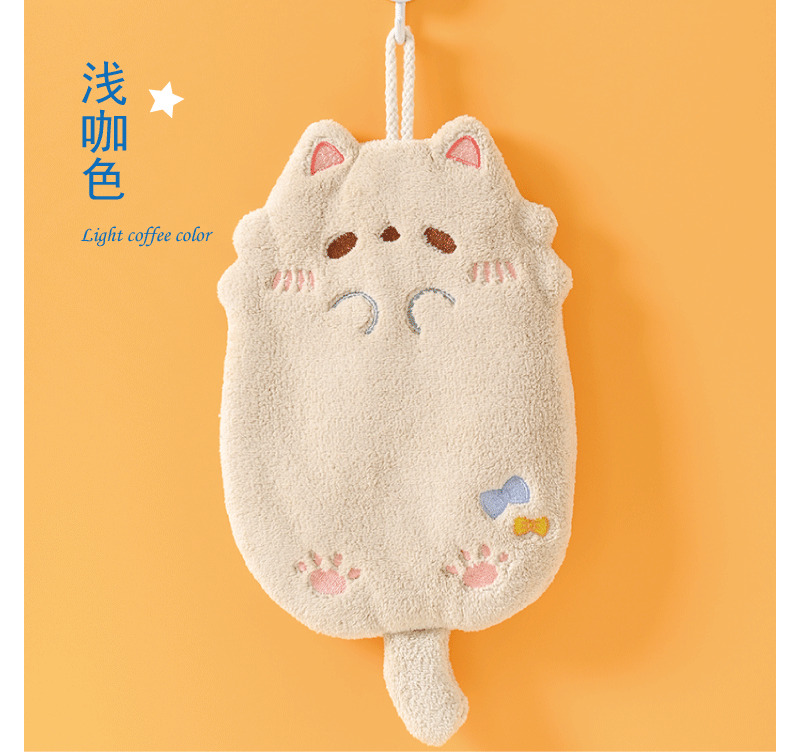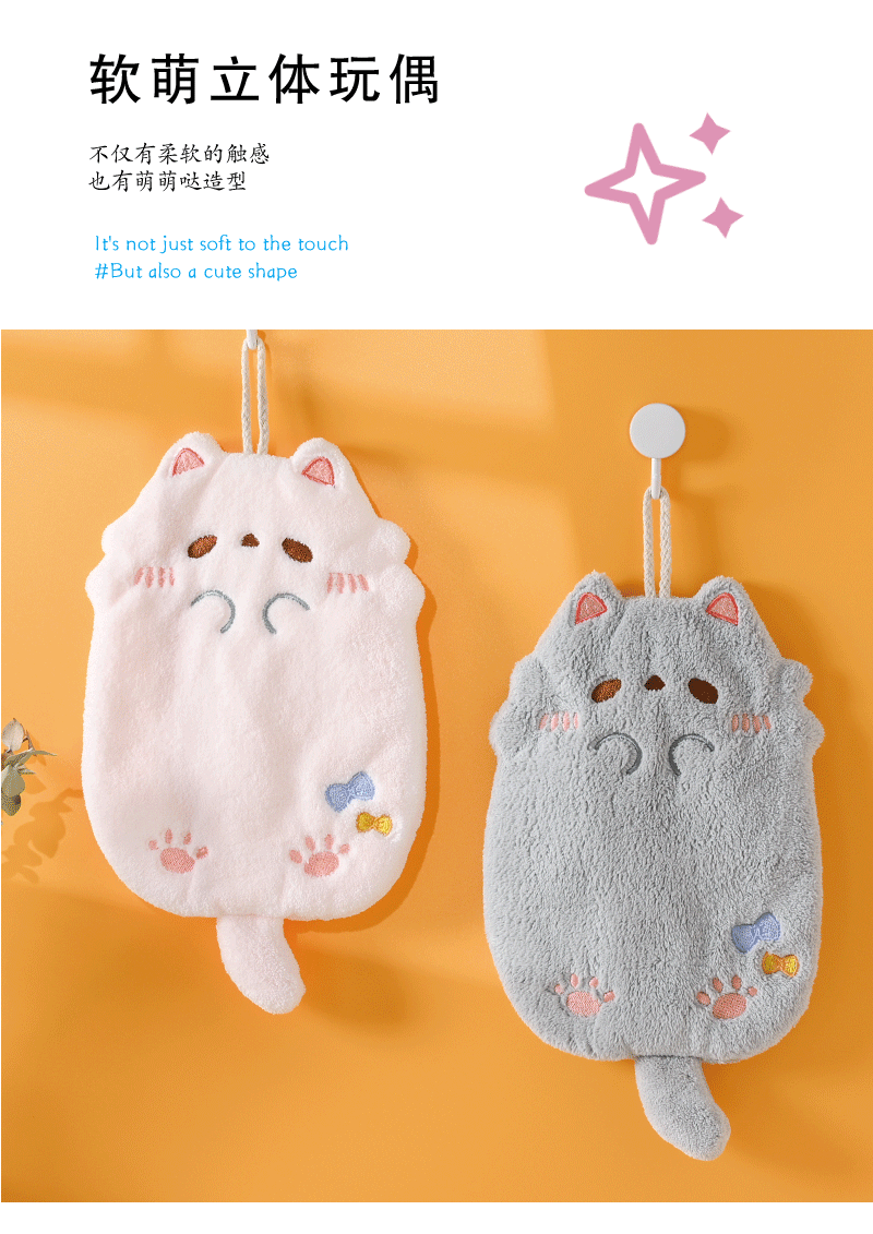 可爱卡通狸猫挂式擦手巾珊瑚绒不掉毛加厚抹布厨房卫生间吸水毛巾