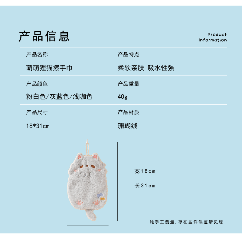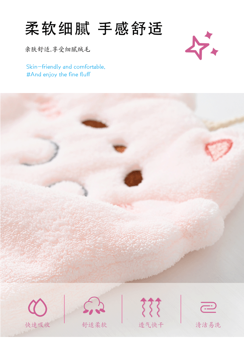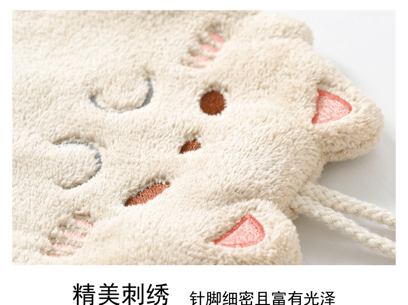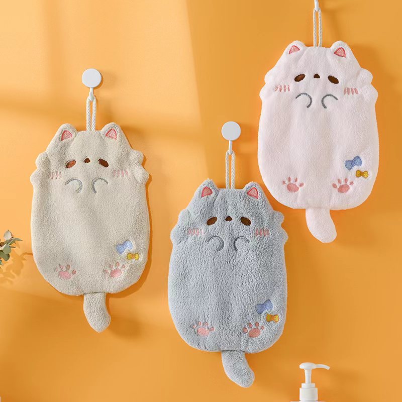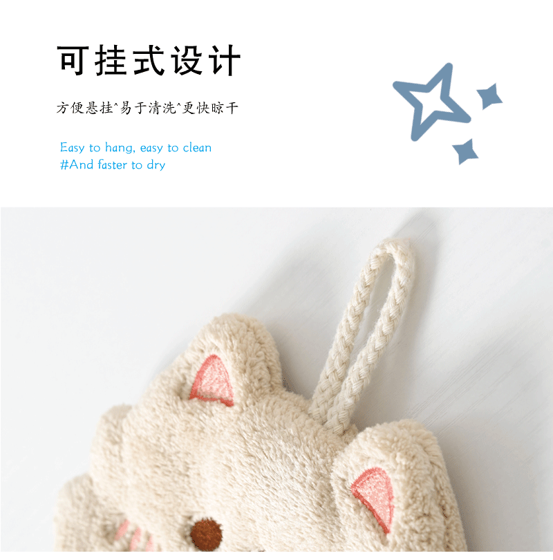 可爱卡通狸猫挂式擦手巾珊瑚绒不掉毛加厚抹布厨房卫生间吸水毛巾