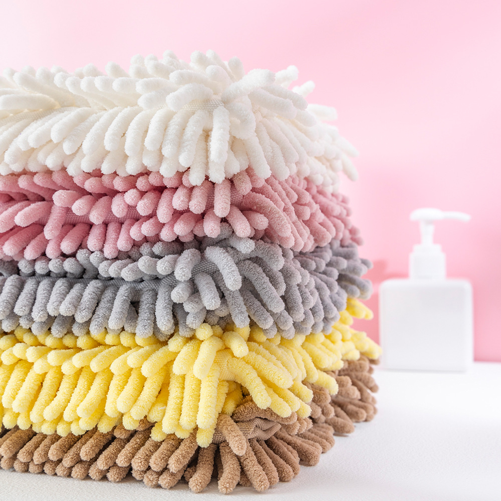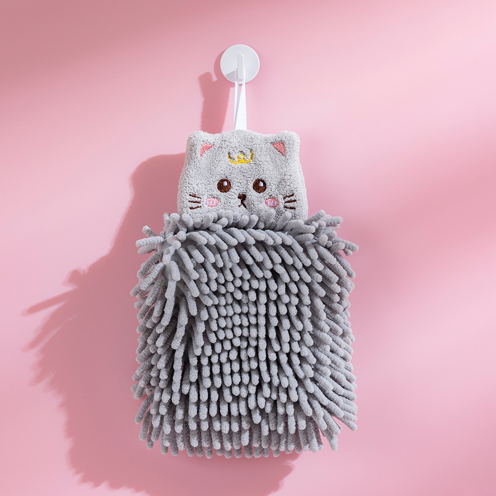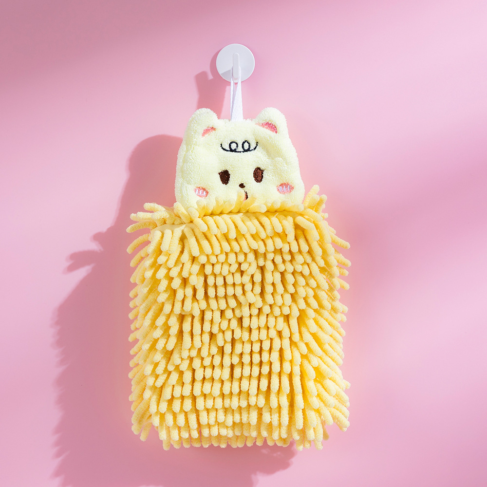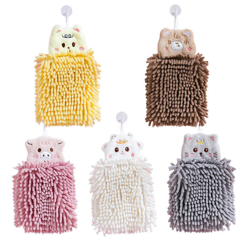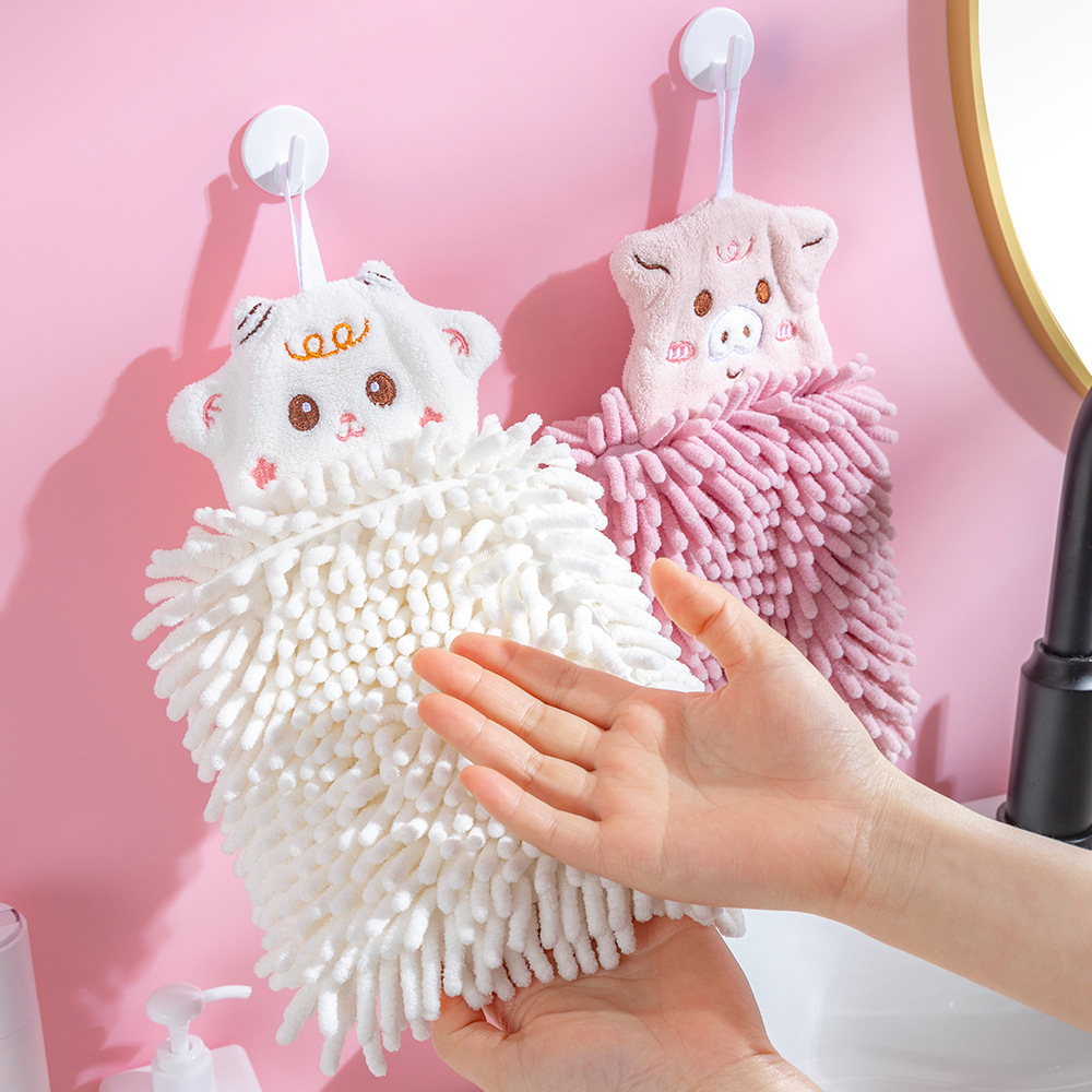 雪尼尔擦手巾挂式卡通动物擦手球家用厨房儿童刺绣吸水毛巾