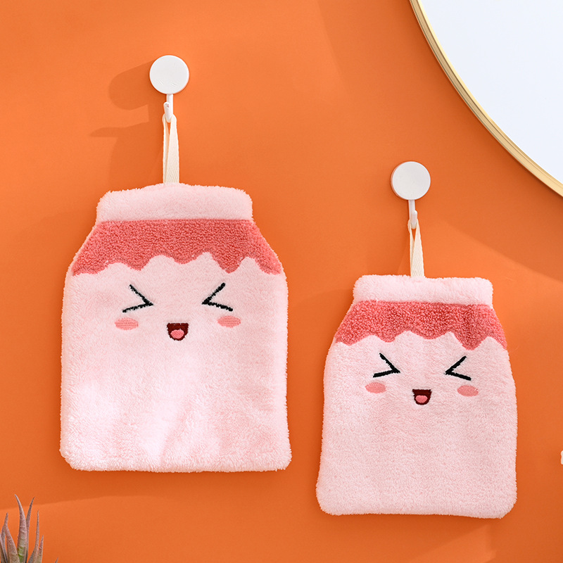 薯条家族挂式擦手巾可挂吸水加大加厚卡通不臭珊瑚绒方巾厨房手帕