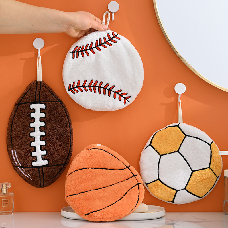 球类挂式擦手巾三层加厚吸水珊瑚绒毛巾厨房速干抹布手帕