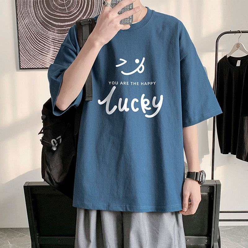 字母印花短袖t恤男生夏季新款港风潮流宽松大码青少年五分袖