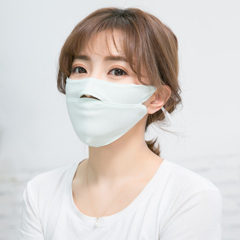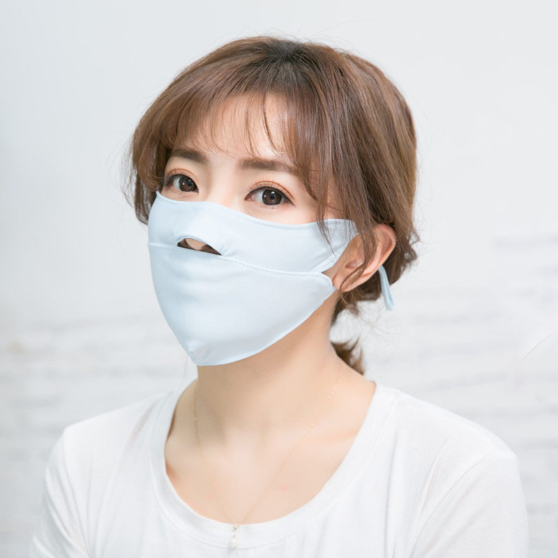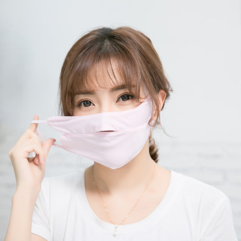 防晒口罩女冰丝春夏季防晒骑行挂耳式纯色薄款露鼻透气薄款面罩