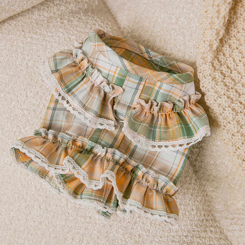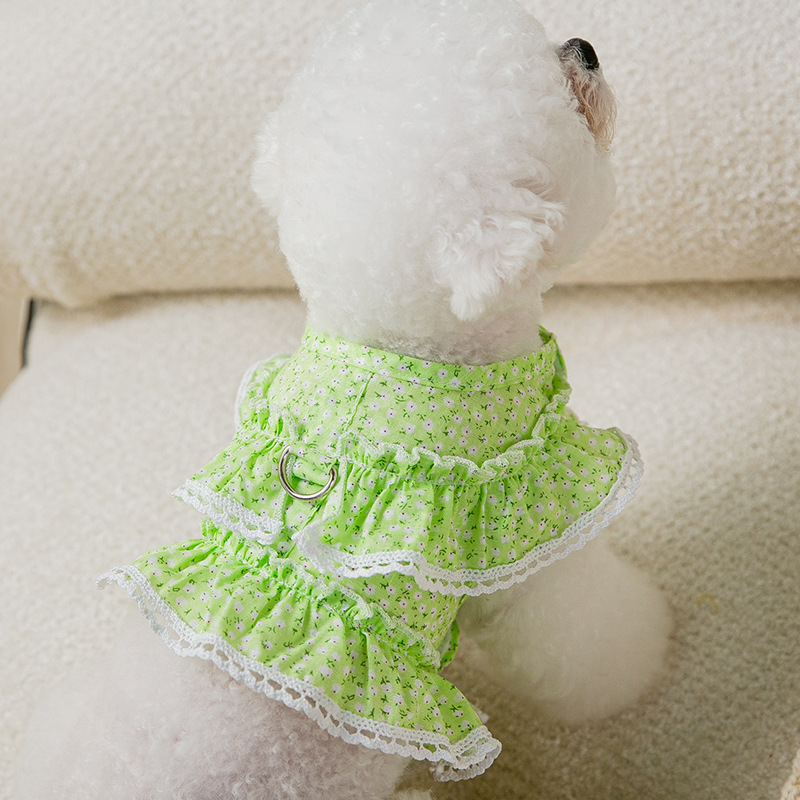 春夏季小狗狗韩系可爱格子碎花带牵引连衣裙中小型犬猫咪宠物衣服