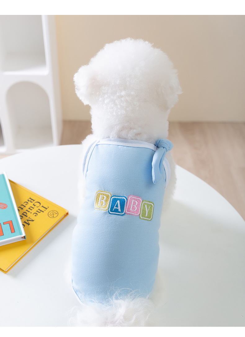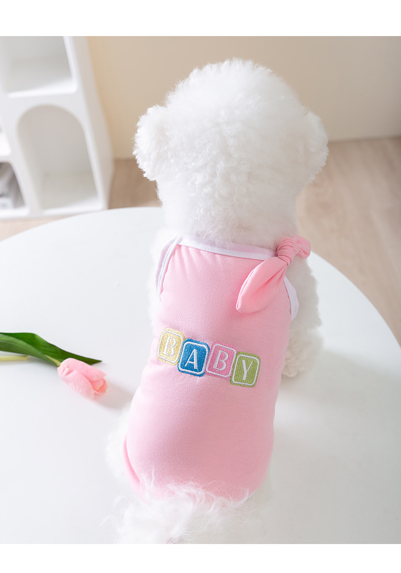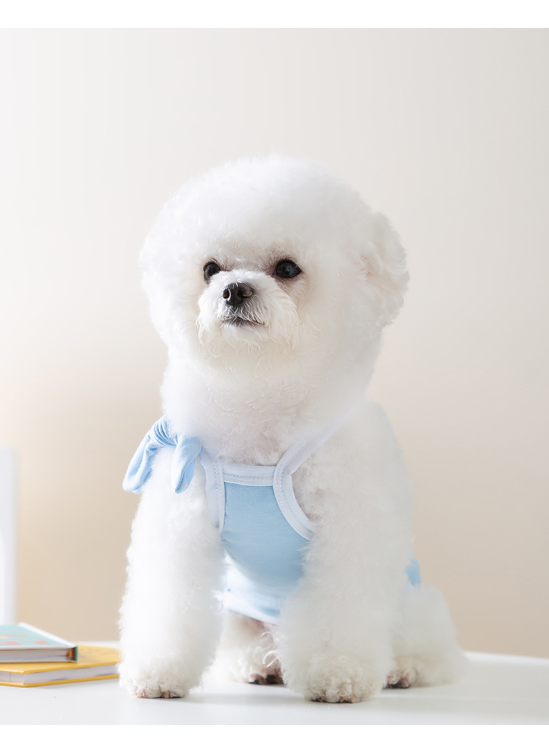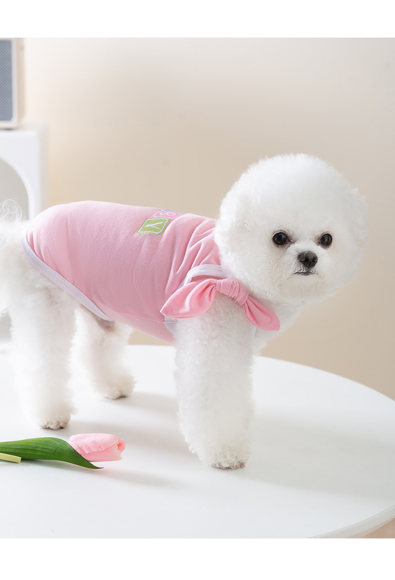 春夏季小狗狗衣服马卡龙色系蝴蝶结吊带猫咪两脚背心中小型犬服饰