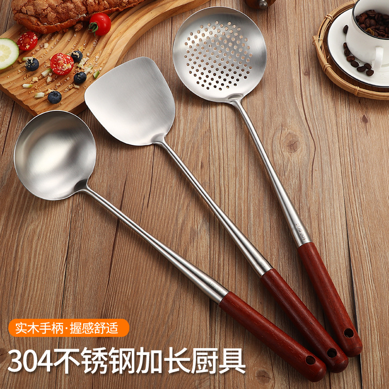 304不锈钢锅铲汤勺加长花梨木柄菜铲子厨师烹饪用品铲勺漏勺炒铲