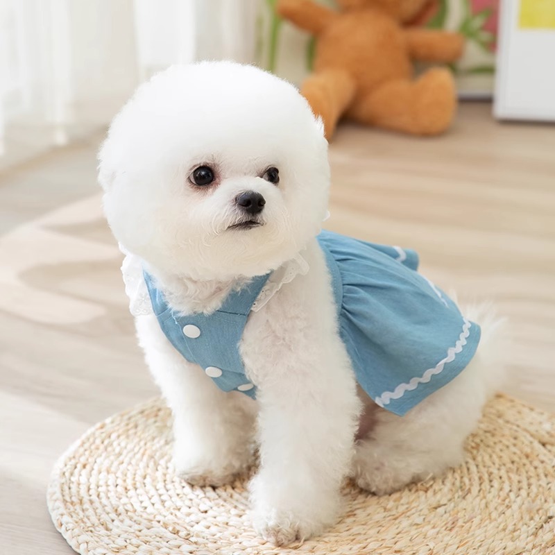 草莓牵引牛仔裙狗狗衣服小型犬泰迪比熊通用宠物服装猫咪裙子