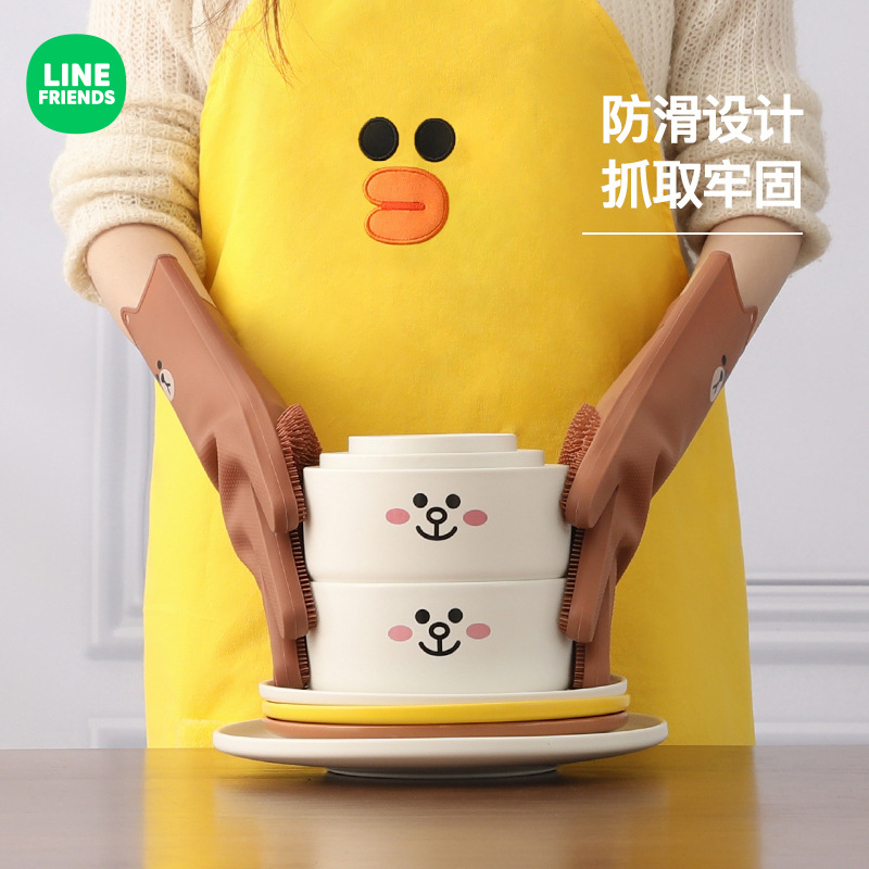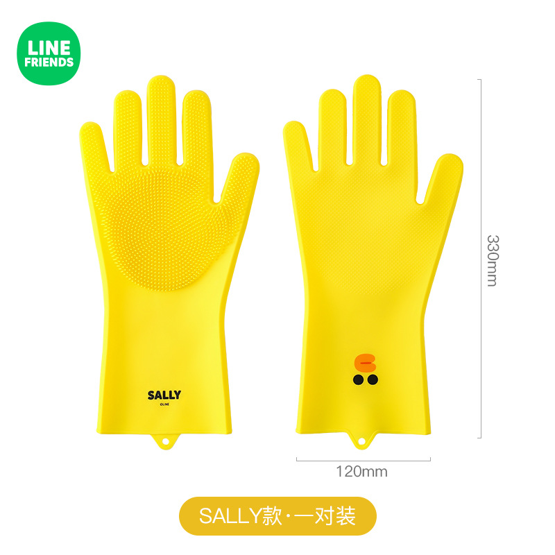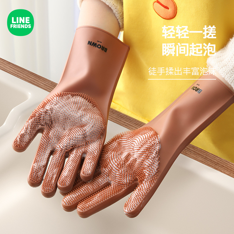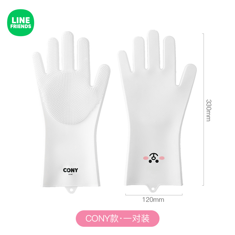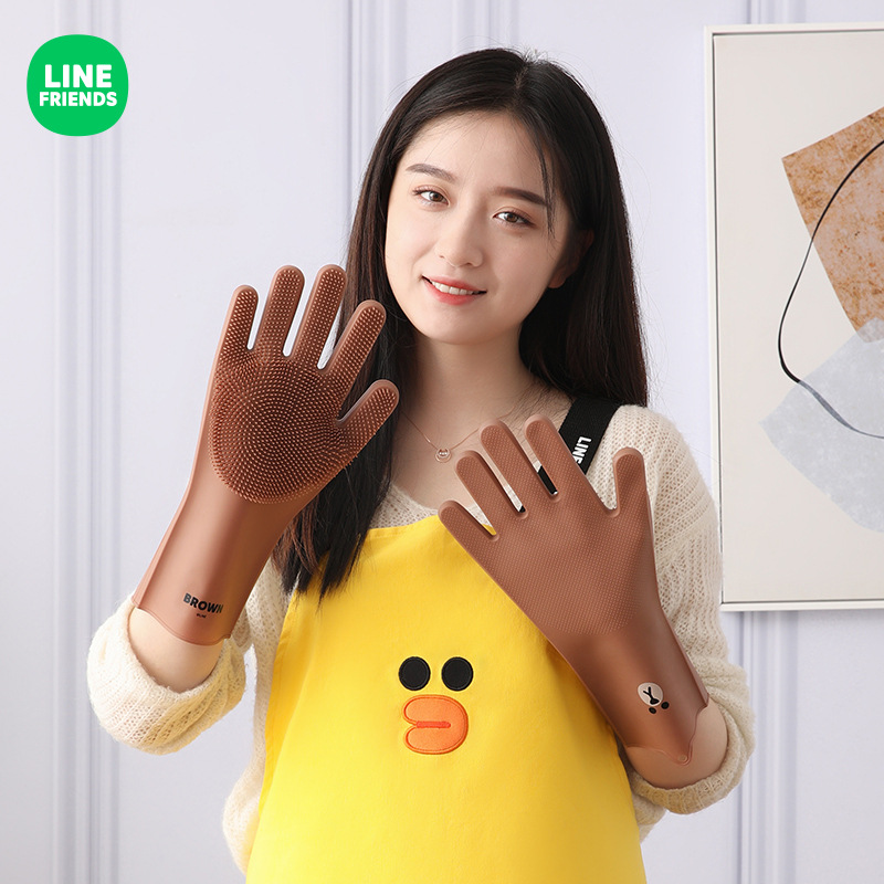 LINE FRIENDS创意厨房卡通硅胶洗碗手套家用耐磨加厚防滑清洁神器