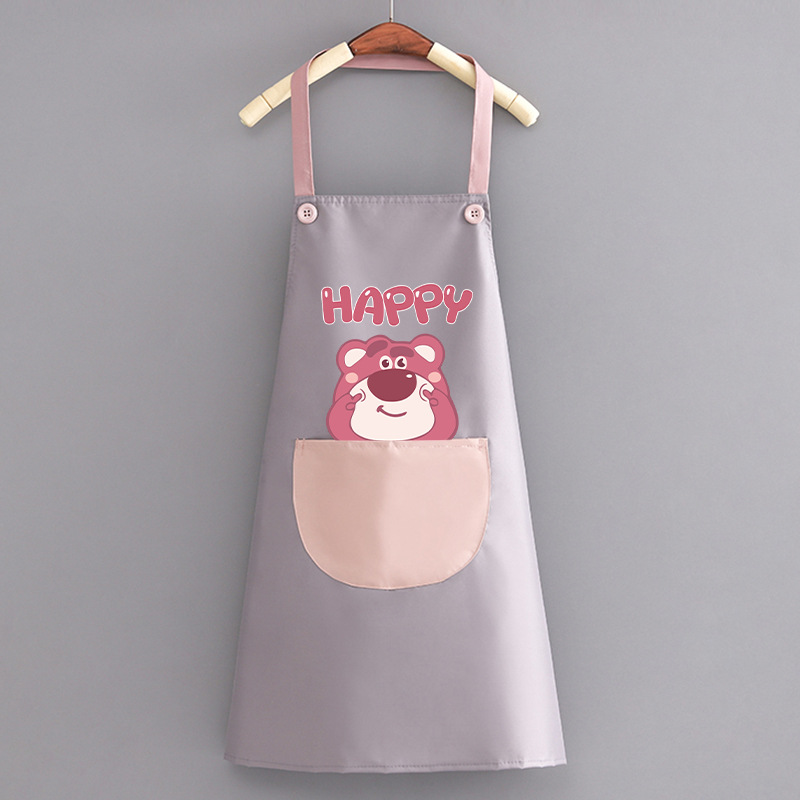 - 挂脖防水草莓熊灰色粉兜+套袖