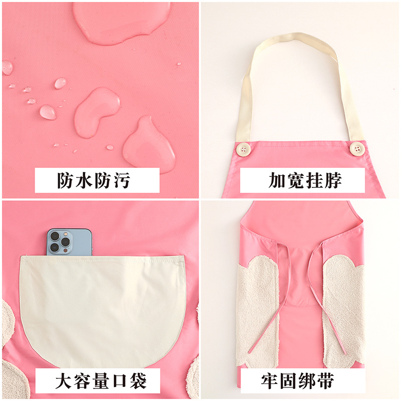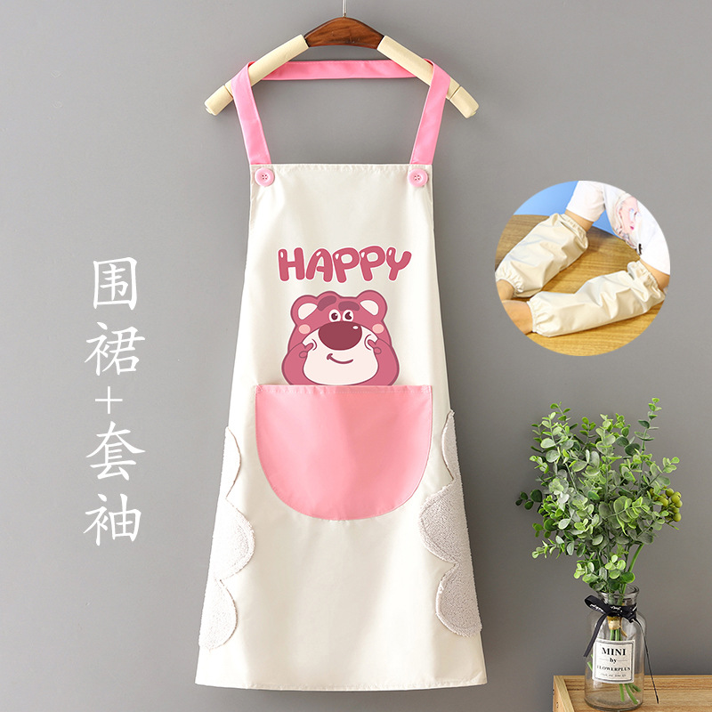 - 擦手挂脖防水草莓熊粉色灰兜+套袖