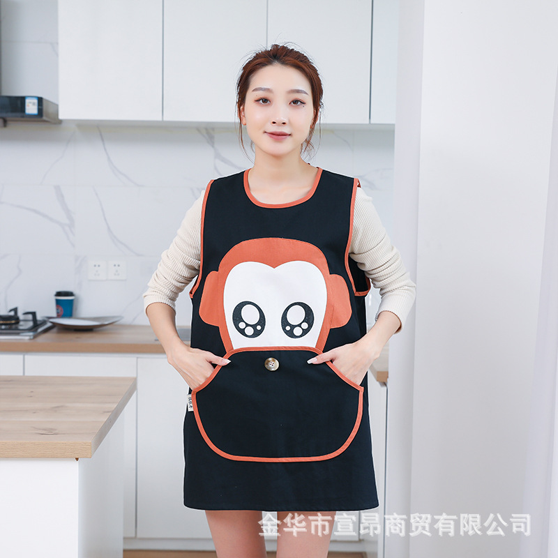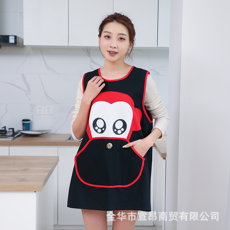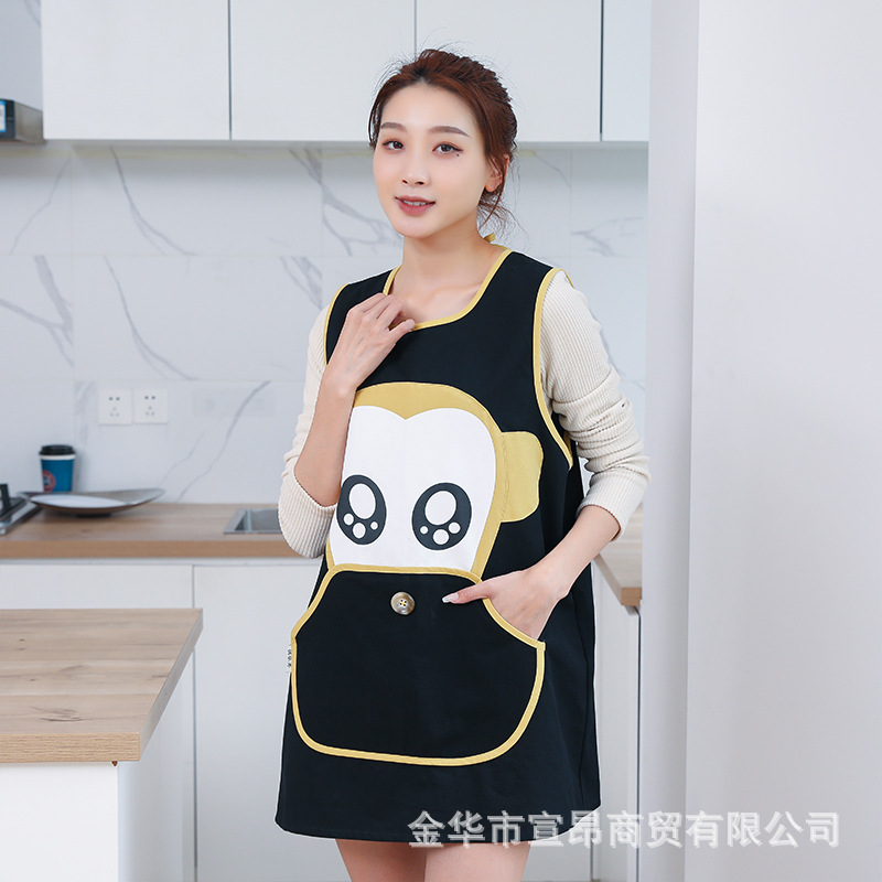 背心式水洗棉围裙家用 创意工作围裙防油污画室围裙无袖罩衣