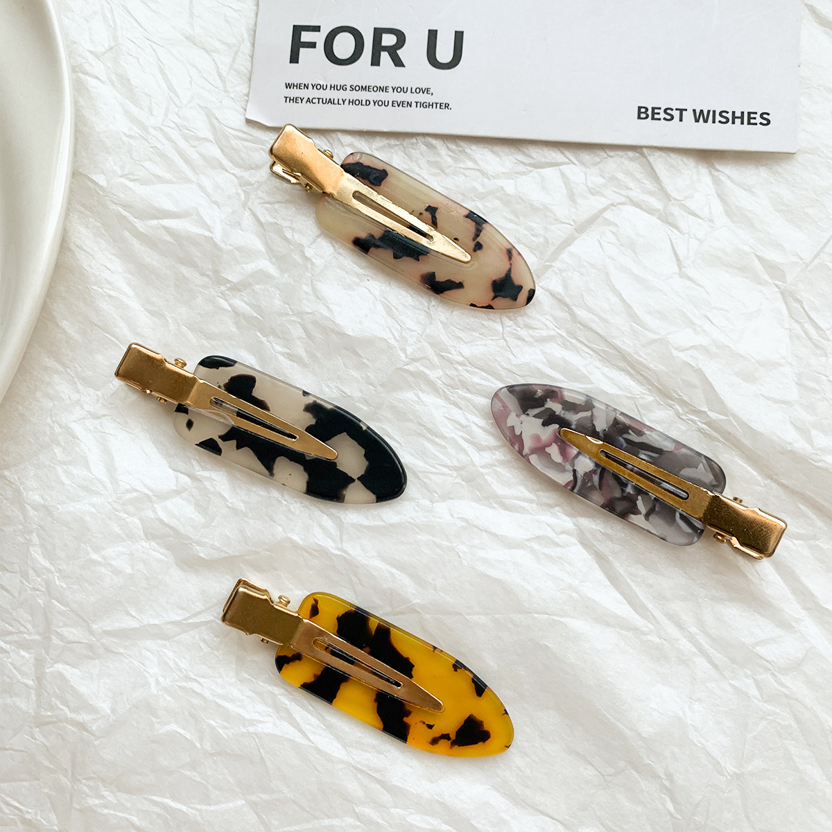 网红同款高级感时尚侧边化妆洗脸醋酸豹纹金属少女鸭嘴边夹