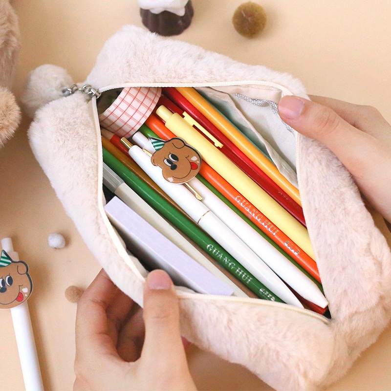 大耳兔笔袋毛茸茸少女心ins手提铅笔袋可爱卡通文具袋文具盒
